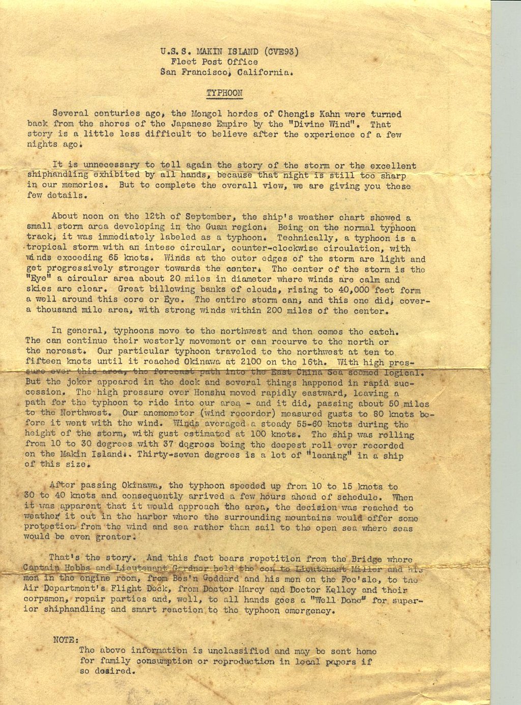419k | Typhoon, September 1945. Collection of LT J.W. Glock, who served as LSO aboard Makin Island, 1944–1945. |