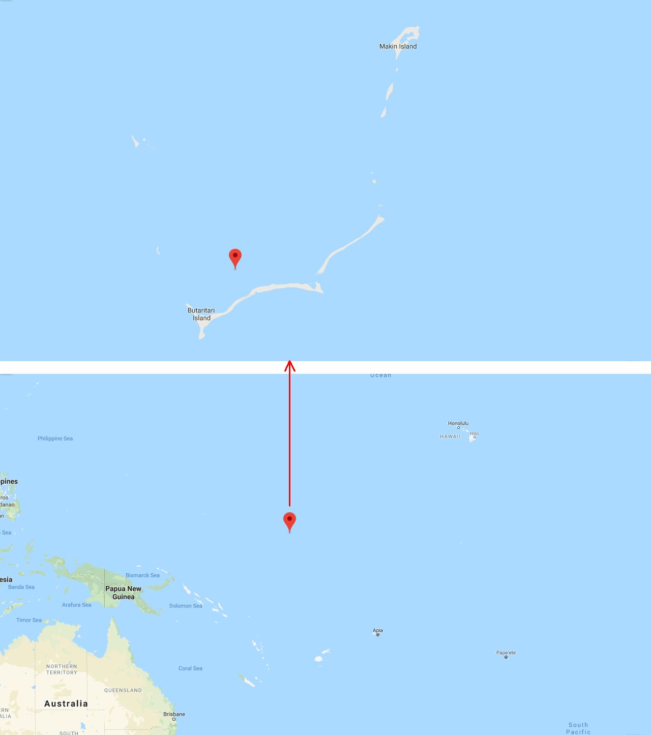 42k | CVE-93 was initially named Woodcliff Bay. Renamed Makin Island, 17 December 1943, to commemorate the recent capture of that island by American amphibious forces. Makin Island is a coral atoll in the northern Gilberts, and it was the scene of two landings by American troops during World War II: a diversionary raid by the 2nd Marine Raider Battalion, the famous "Carlson's Raiders," 16 to 18 August 1942, and an invasion of the atoll by the Northern Attack Force, 5th Fleet, 20 to 23 November 1943. (In fact, both attacks were directed against Butaritari Island [NS0309347], known as Makin Atoll by the US military during World War II.) NS0305602: USS Liscome Bay (CVE-56) was torpedoed and sunk in the early hours of 24 November 1943, southwest of Butaritari Island, during Operation Galvanic, the US invasion of the Gilberts. Her sinking accounted for the majority of American casualties in the Battle of Makin. (Map NS0309347 courtesy of Google Maps Aircraft Carriers: An Illustrated Design History, by Norman Friedman.. Photo NS0305602 submitted by Robert Hurst.) |