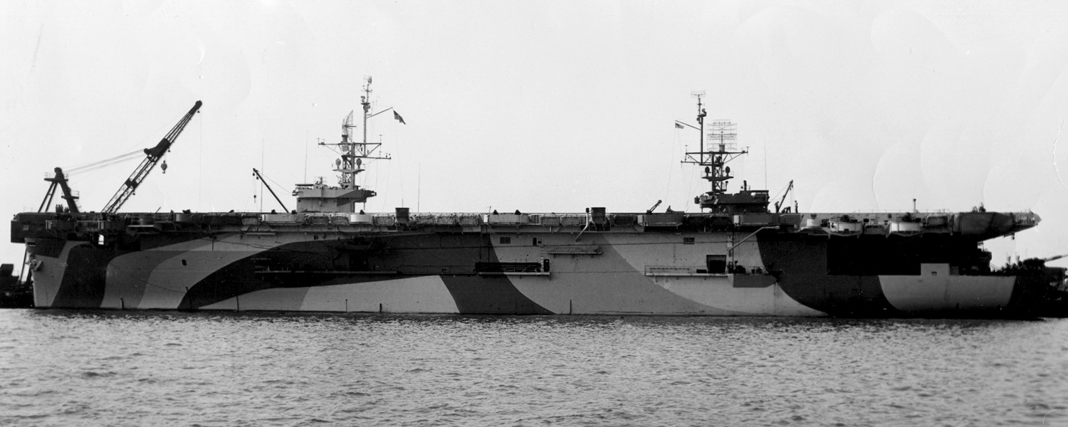 60k | USS Bougainville (CVE-100) underway, circa 1945. U.S. Naval History and Heritage Command Photograph (#NH 89182). Courtesy of William H. Davis, 1979. |