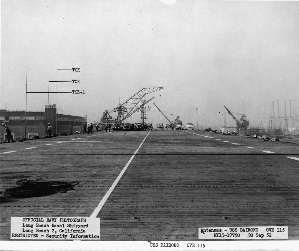 107k | NY13-17752, USS Bairoko (CVE-115), Antennas - 30 September 1952. Long Beach Naval Shipyard, Long Beach 2, California. Official Navy Photograph. National Archives and Records Administration (NARA), photo # rg19nn-b1584-006-041_pr, from Record Group 19. |
