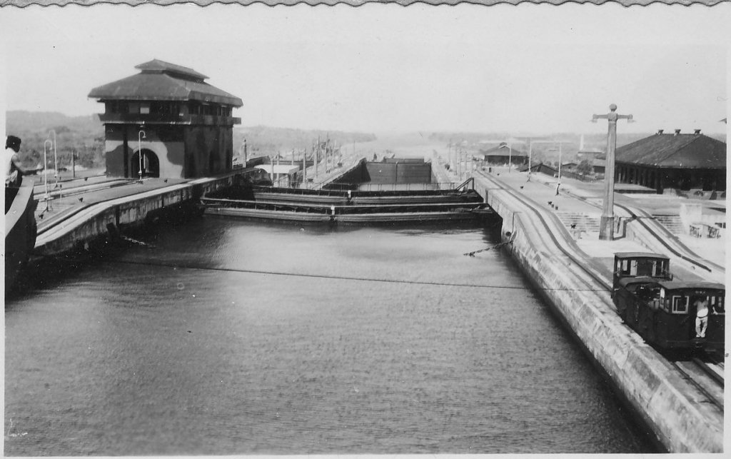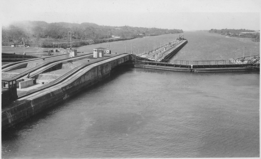 81k | After shakedown along the west coast, USS Mindoro (CVE-120) sailed for the east coast late in January 1946 and arrived Norfolk, Va., 15 February. This is a series of photos taken from Mindoro as she was crossing the Panama Canal. |