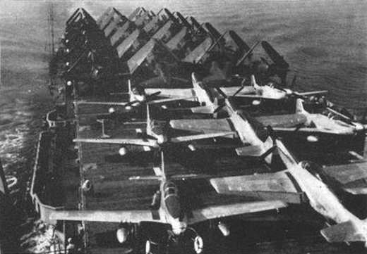 261k | Grumman TBM-3E Avengers of Air Anti-Submarine Squadron (VS) 22 "Checkmates" aboard USS Mindoro (CVE-120). VS-22 was assigned to the escort carrier for a deployment to the Mediterranean Sea from September to November 1950. U.S. Navy photo from the Mindoro 1950 Cruise Book. |