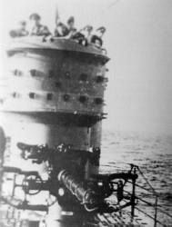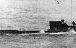 ![]() U-664 is abandoned by her crew. She was sunk on her 5th patrol. |