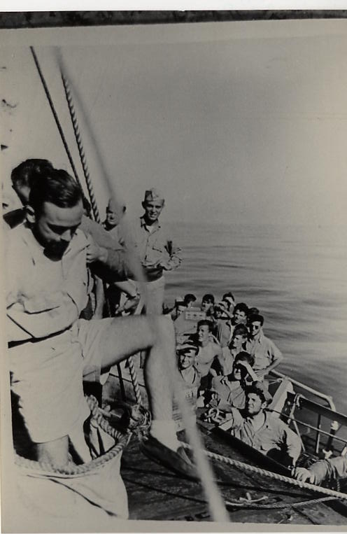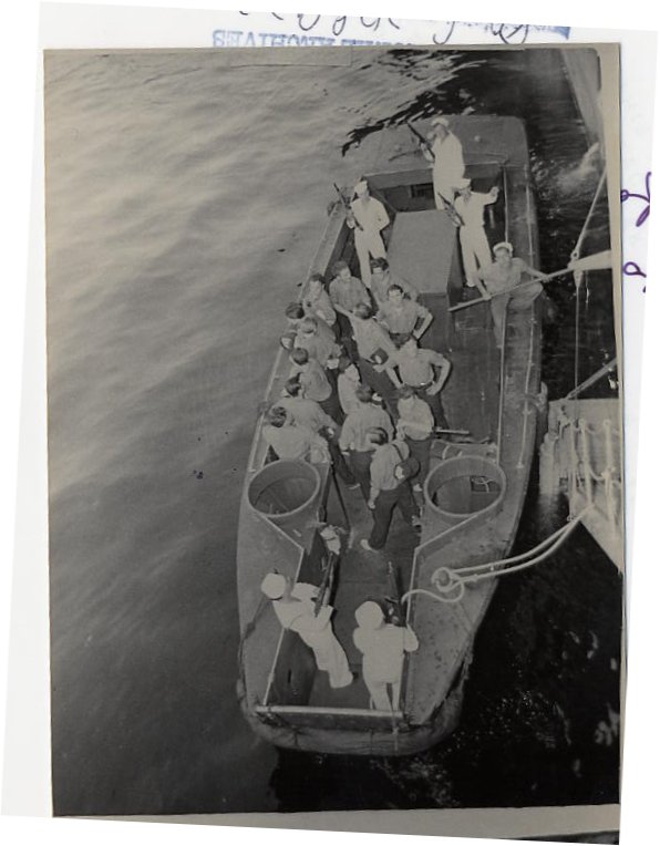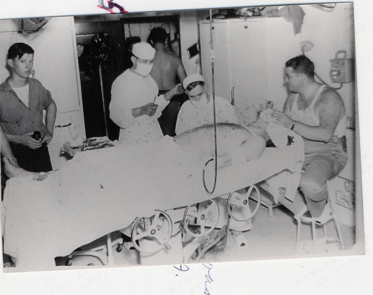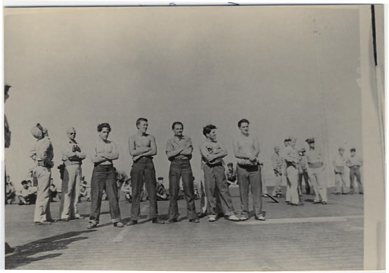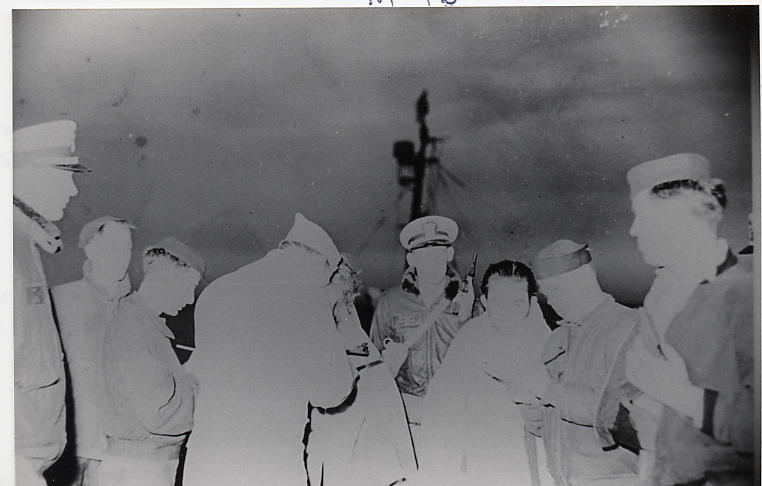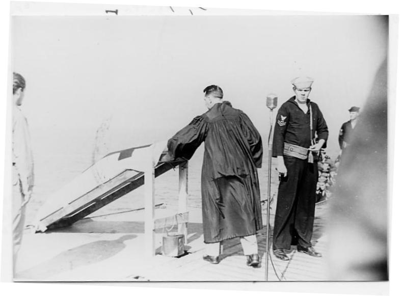 A note of humor: While making an inspection of the ship he found the deck covered with a gooey substance, he was surprised to see two seamen seated on a torpedo tube eating Boston Cream pie. The cook baked a batch and the explosion splattered most of it over the deck.