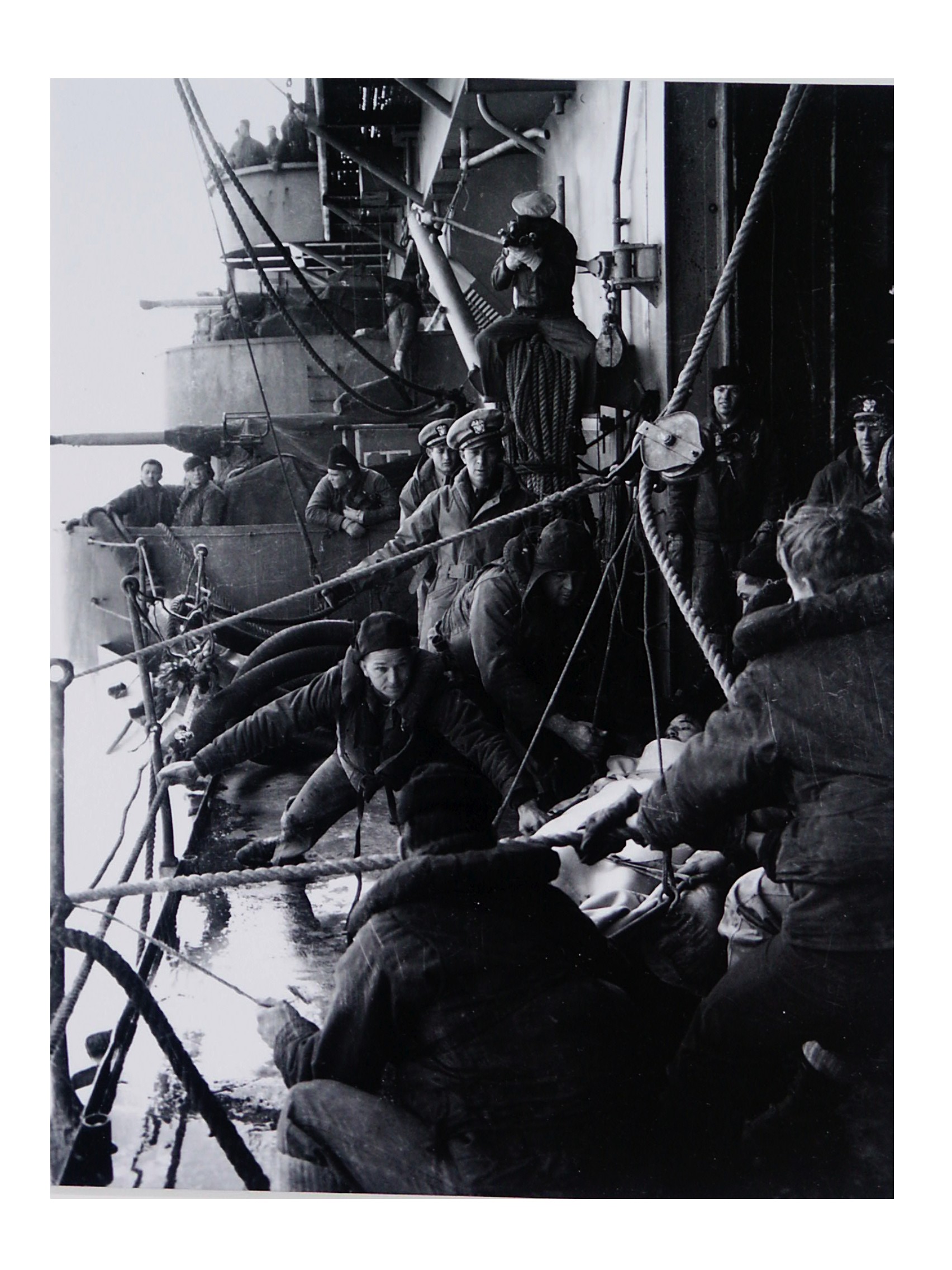 ![]() Sailors being transferred to a hospital ship (from the landing mishap (left)?) 102 Kb 544 Kb |