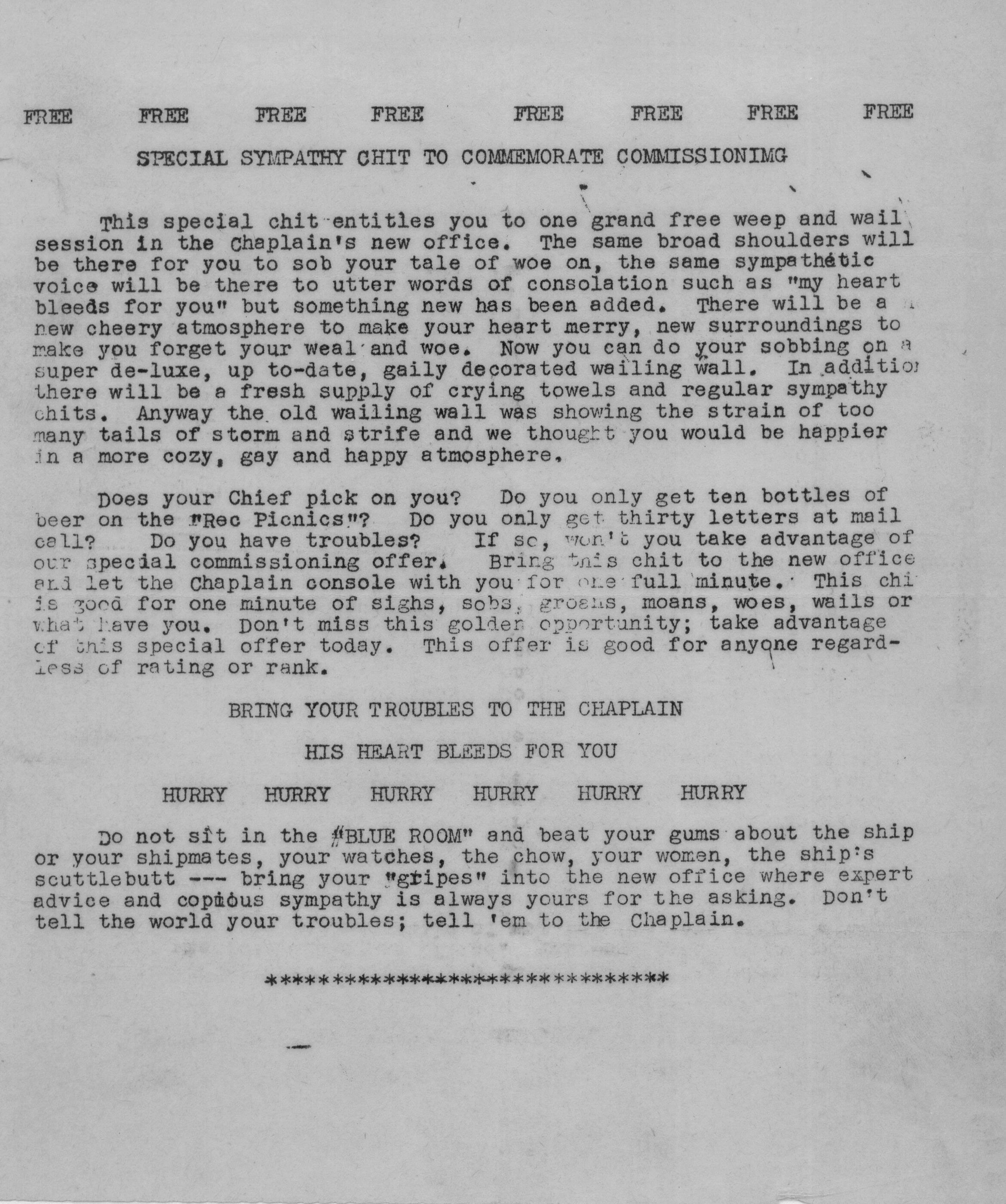 | Chaplain's sympathy chit. |