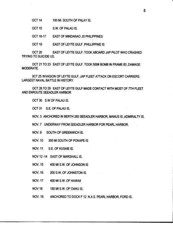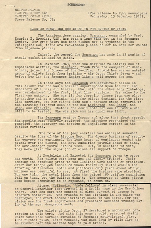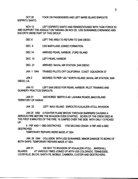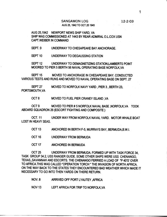 Abbreviated Log of the USS Sangamon (ACV-26/CVE-26) taken directly from