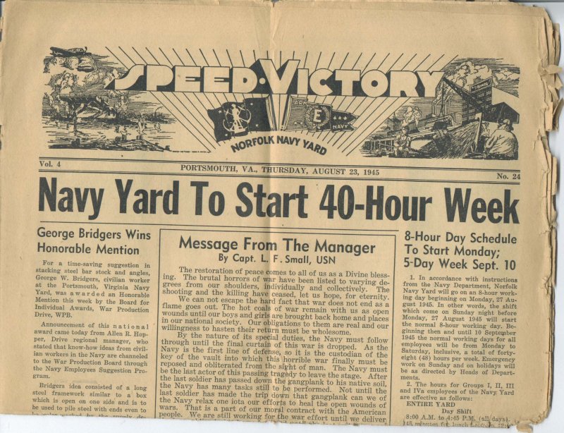Speed Victory - Norfolk Navy Yard. August 23, 1945.