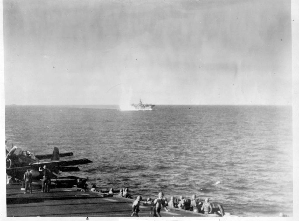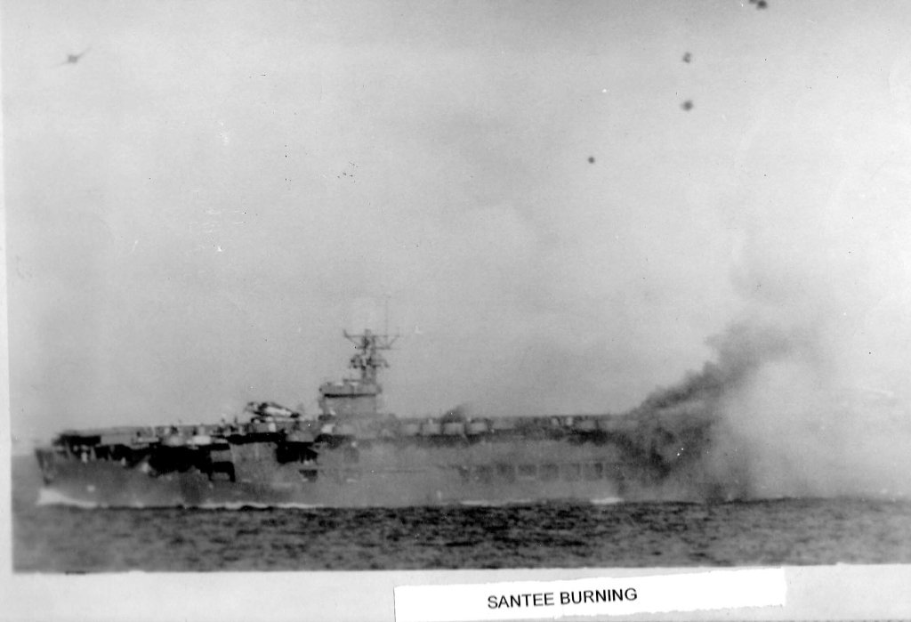 ![]() NS-03-cve29-bd0688 Santee burning, during the Battle of Leyte Gulf, October 1944. (72 Kb) |