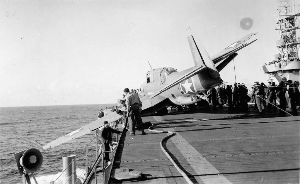 ![]() NS-03-cve29-bd6967 This Avenger torpedo bomber made an unusual landing (105 Kb) |