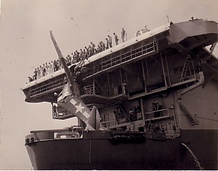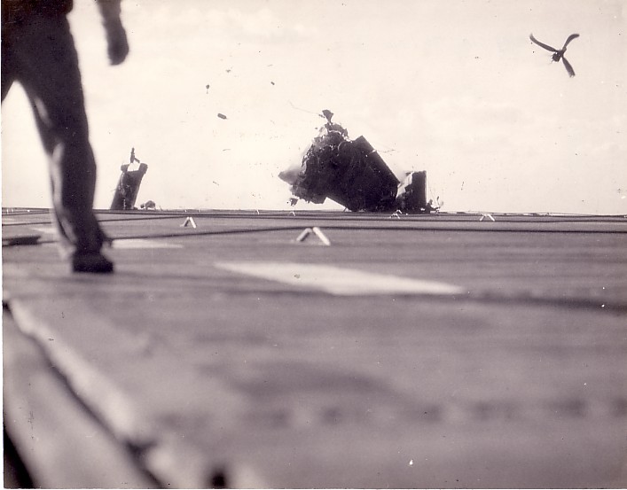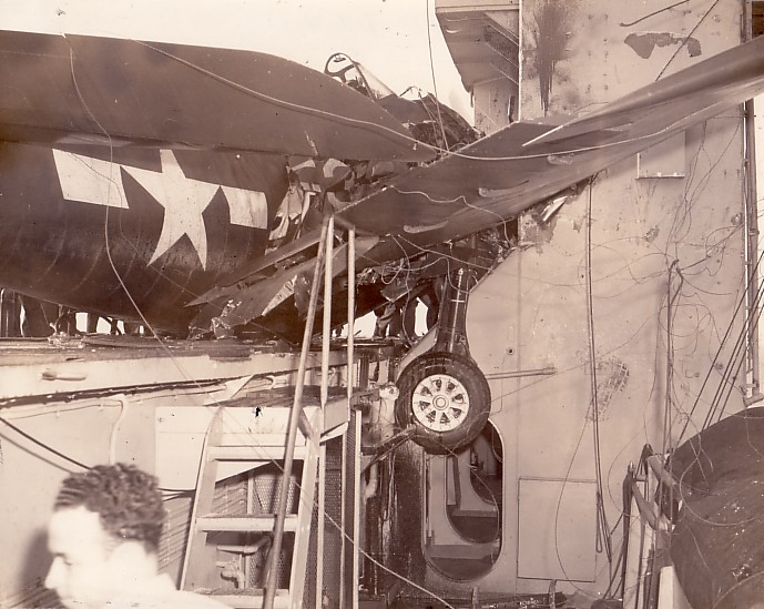 Grumman F6F Hellcat crashed into island, 1944.