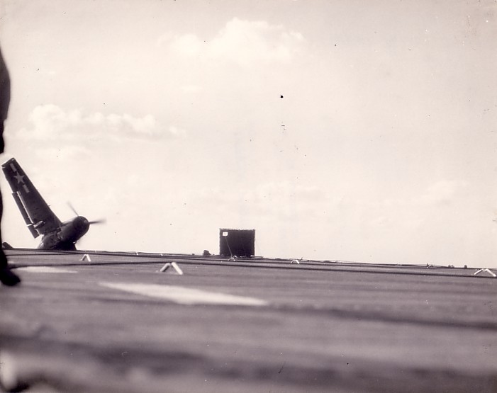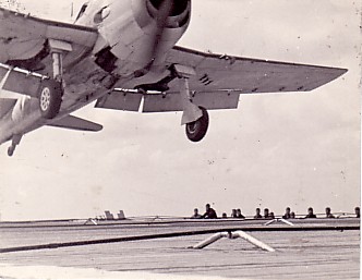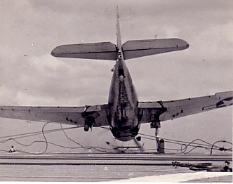 F6F Hellcat coming in too low, November 1944.
