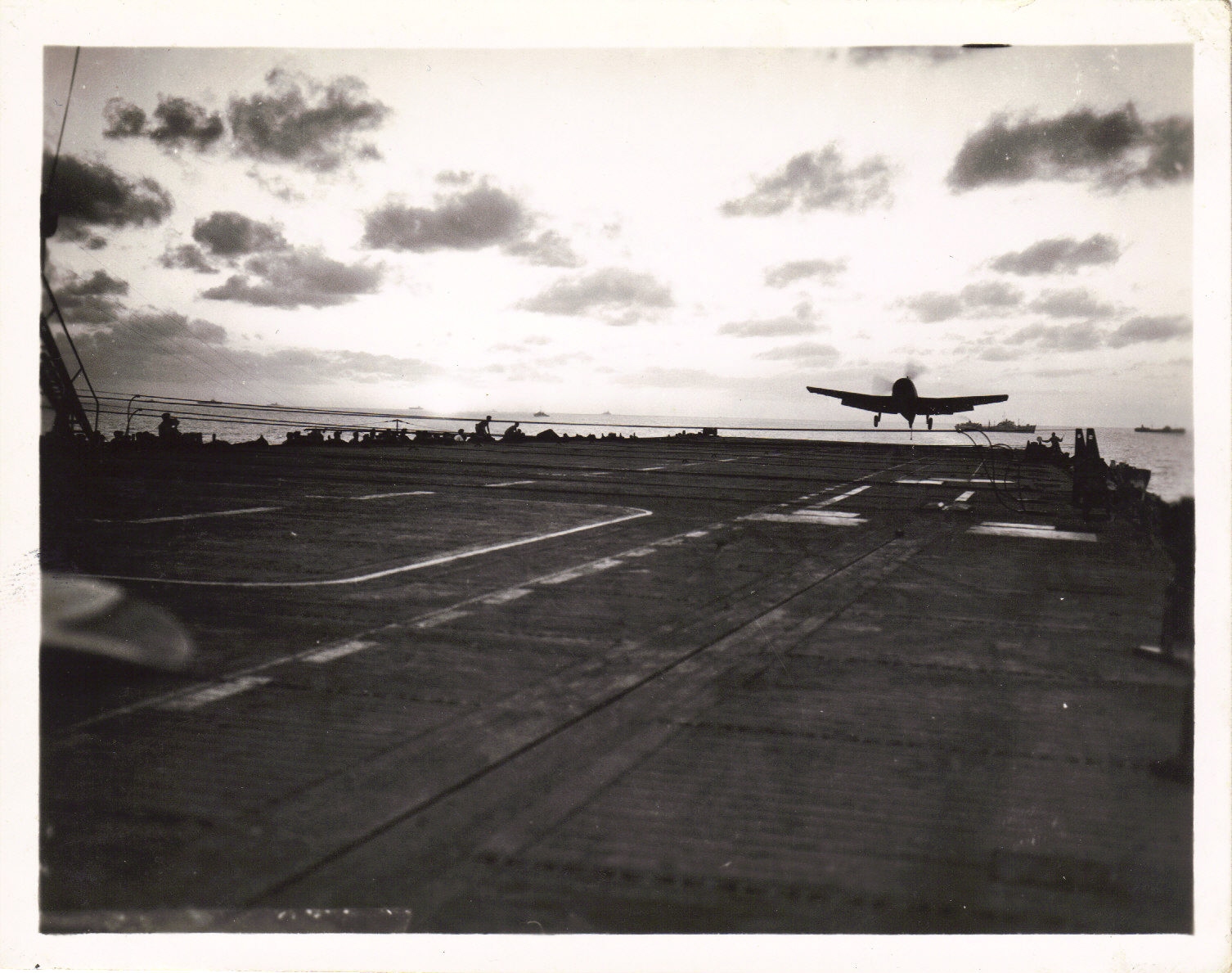 It was extraordinary that the Japanese never attacked any of the ‘logistic groups’ either by aircraft or submarine, in fact it was an undoubted disappointment to our pilots. At first our fighters were frequently sent to intercept approaching ‘bogeys’ in which they succeeded with a consistency creditable to the pilots and fighter direction officers, but only to find in each case that the alarm had been caused by an American patrol or transport aircraft which had not identified itself. Soon we learnt their routine and call signs and we could get into conversation and check up whether it was the “Leyte midday express,” etc., before they were near enough to justify a “scramble” of our waiting Hellcats.