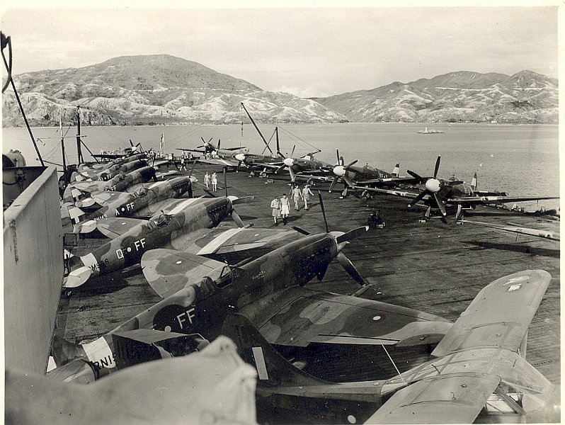 ![]() 135K 514K NS-03-cve52-o11 1945: Supermarine Spitfires of No. 132 Squadron were ferried aboard HMS Smiter - Hong Kong - Japan surrender |