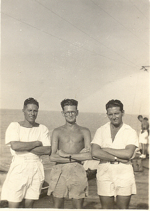 ![]() 71K NS-03-cve52-op4 South China Sea, 1945 (l to r): Fred Perry, Terry Oxley, Frank Jackson |