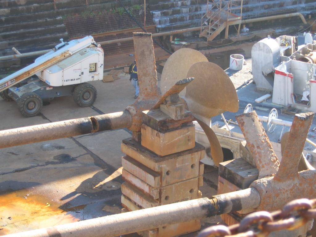 Starboard shaft lying on deck |