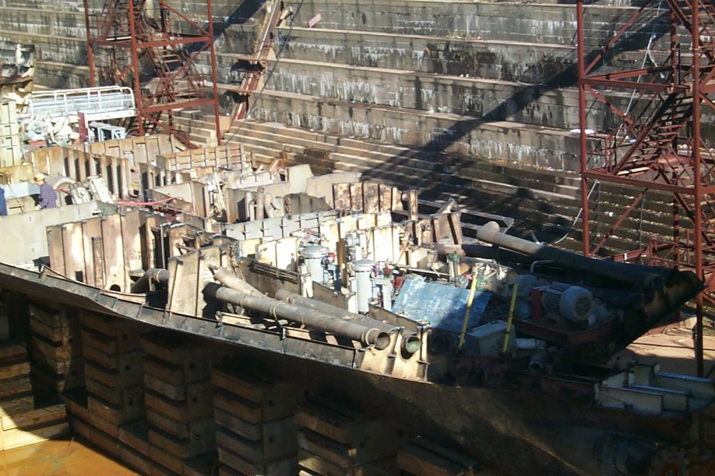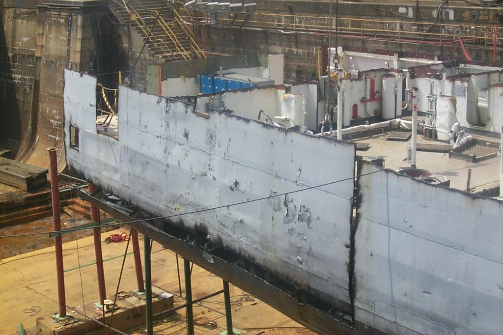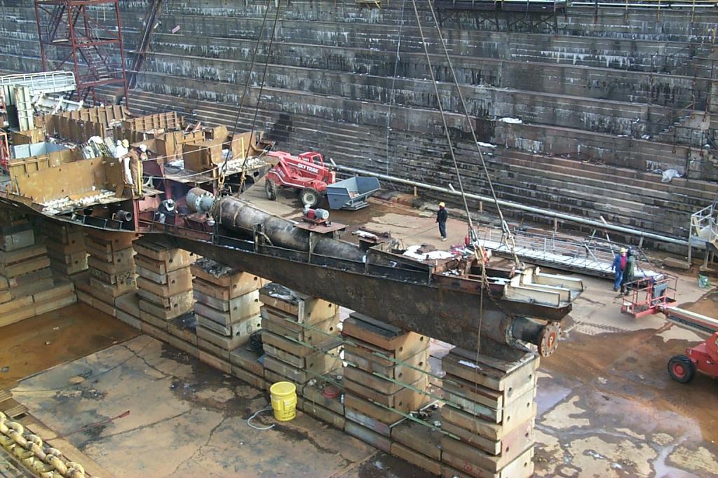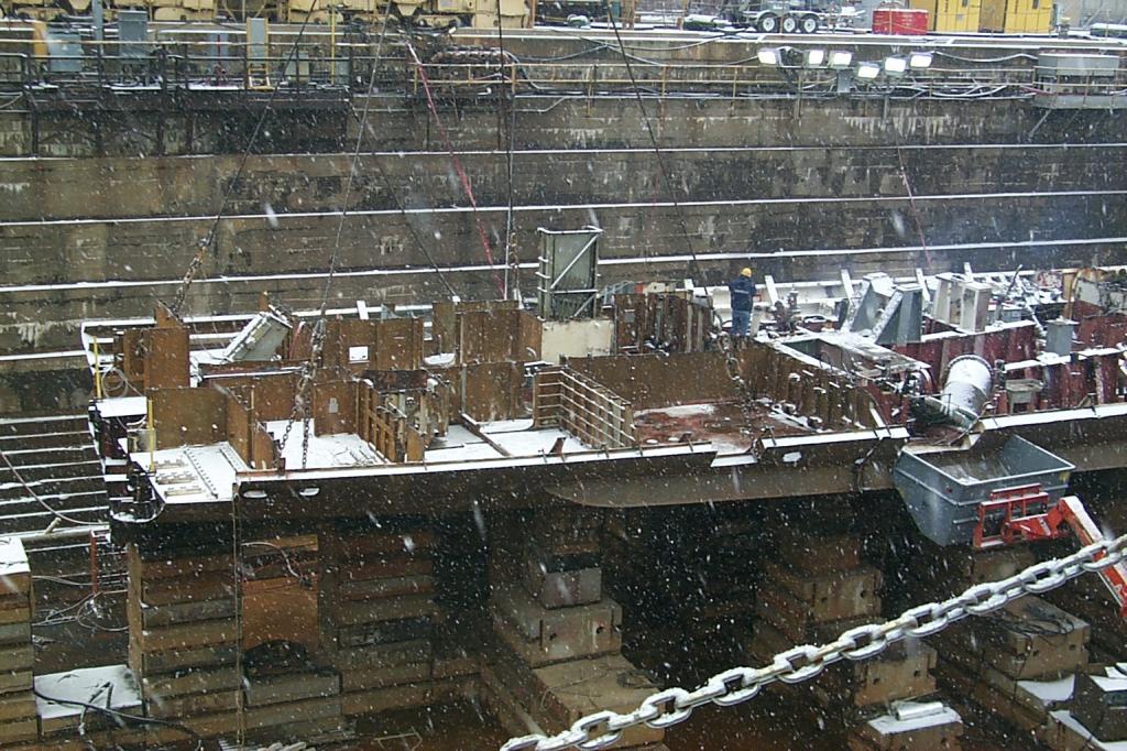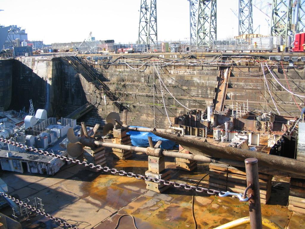 drydock 2, decks of the ship clearly visible, in the foreground are