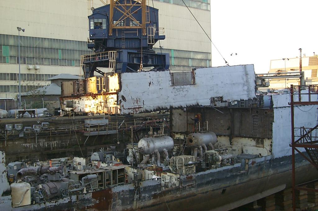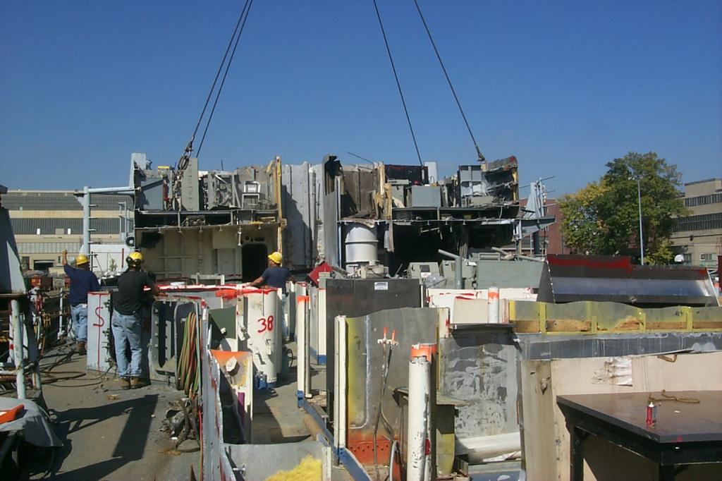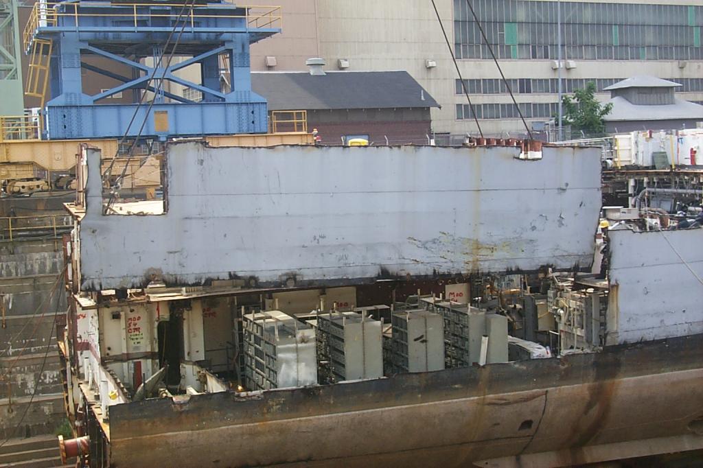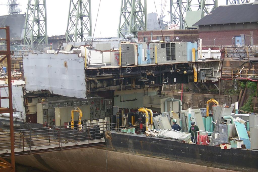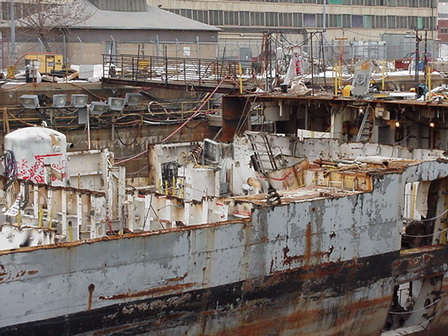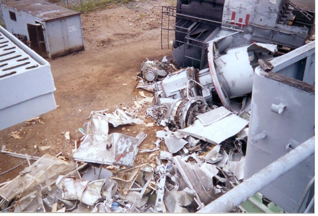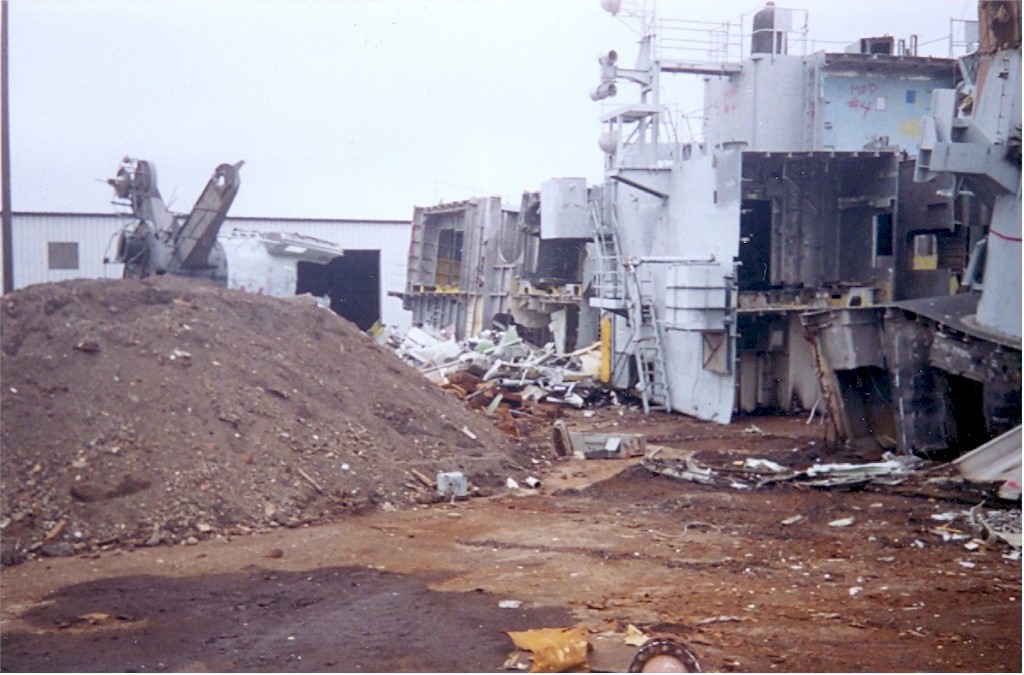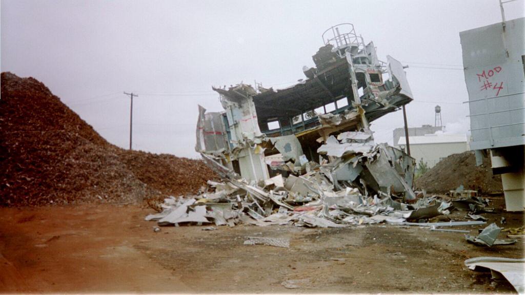 modules from a once proud US Navy ship waiting for the shredding