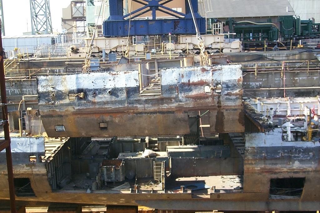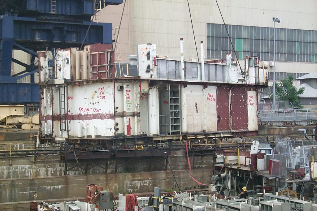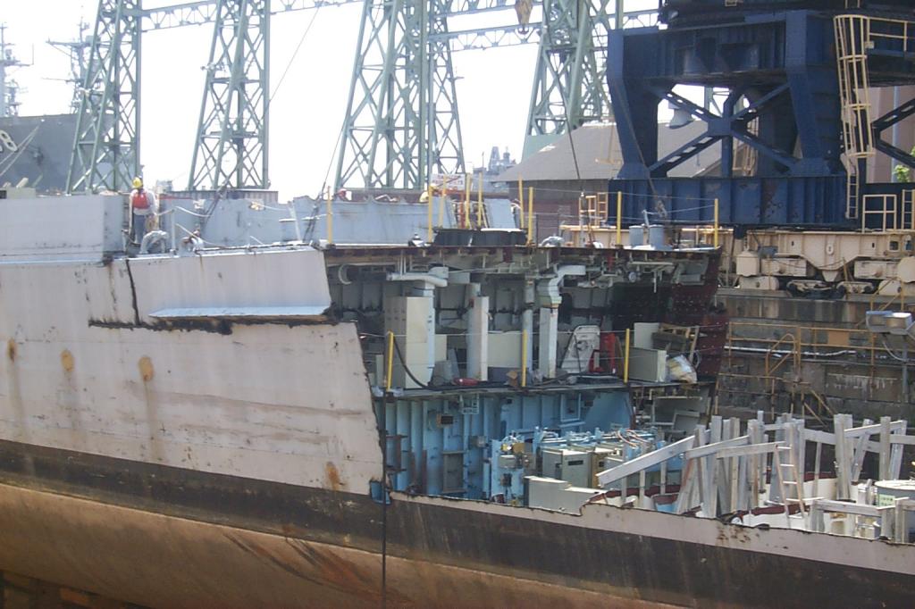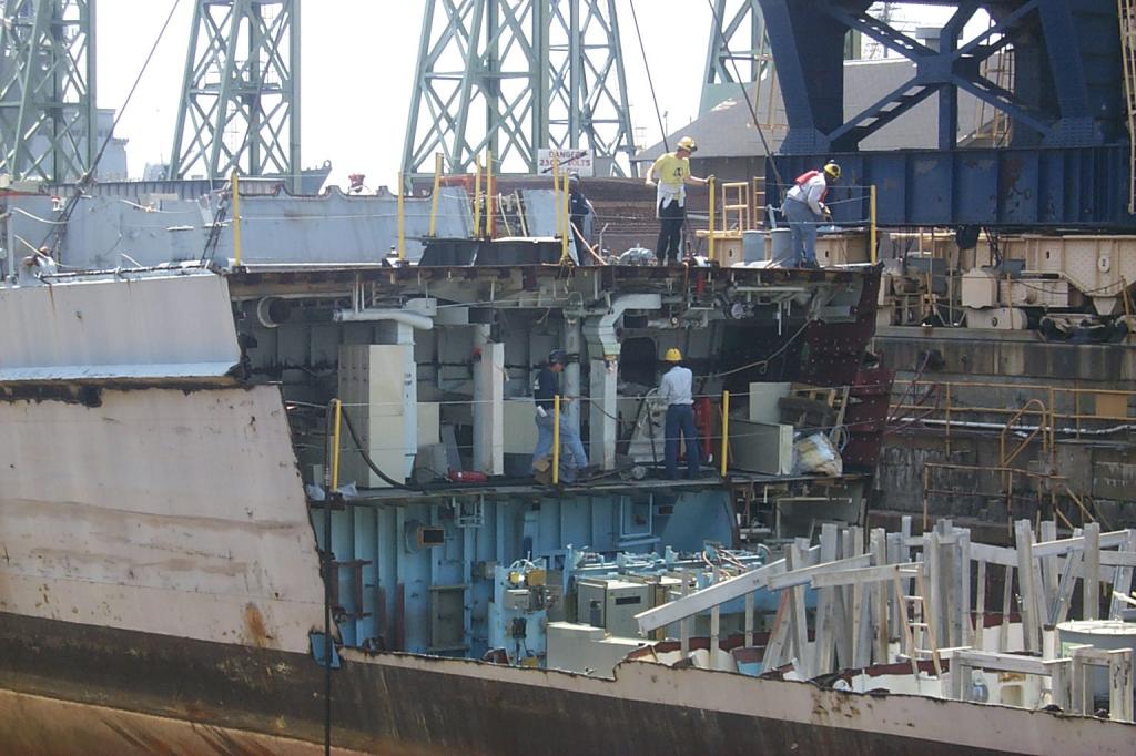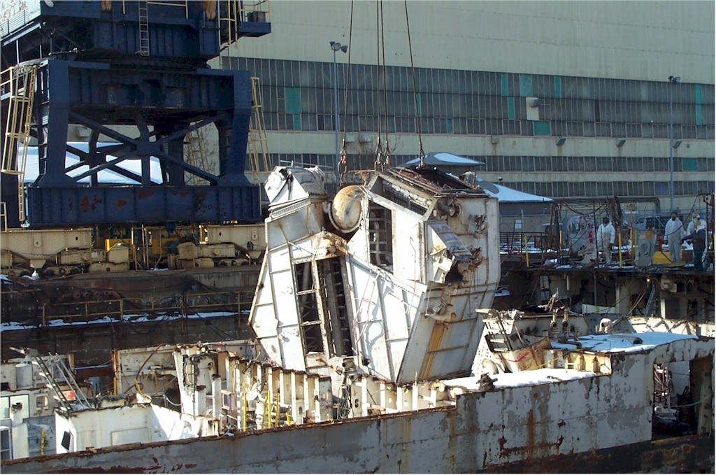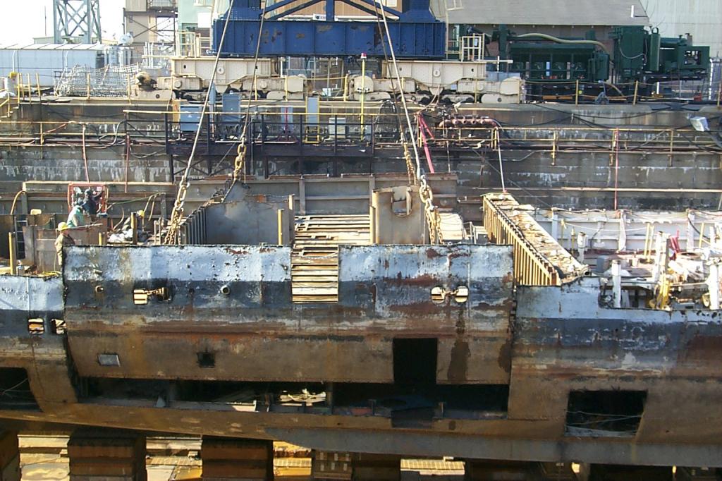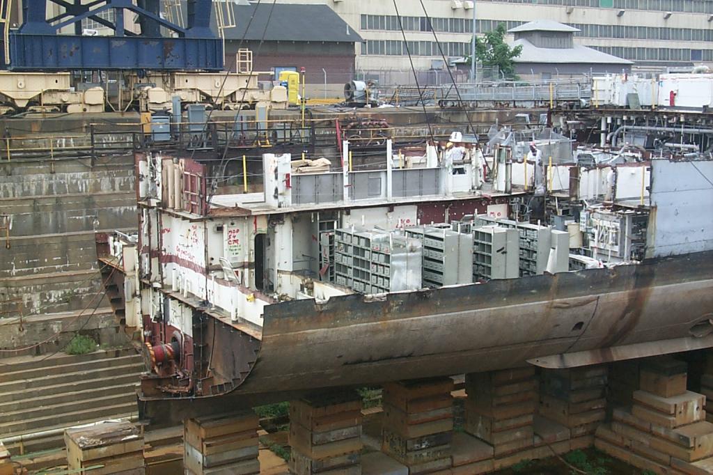 modules from a once proud US Navy ship waiting for the shredding