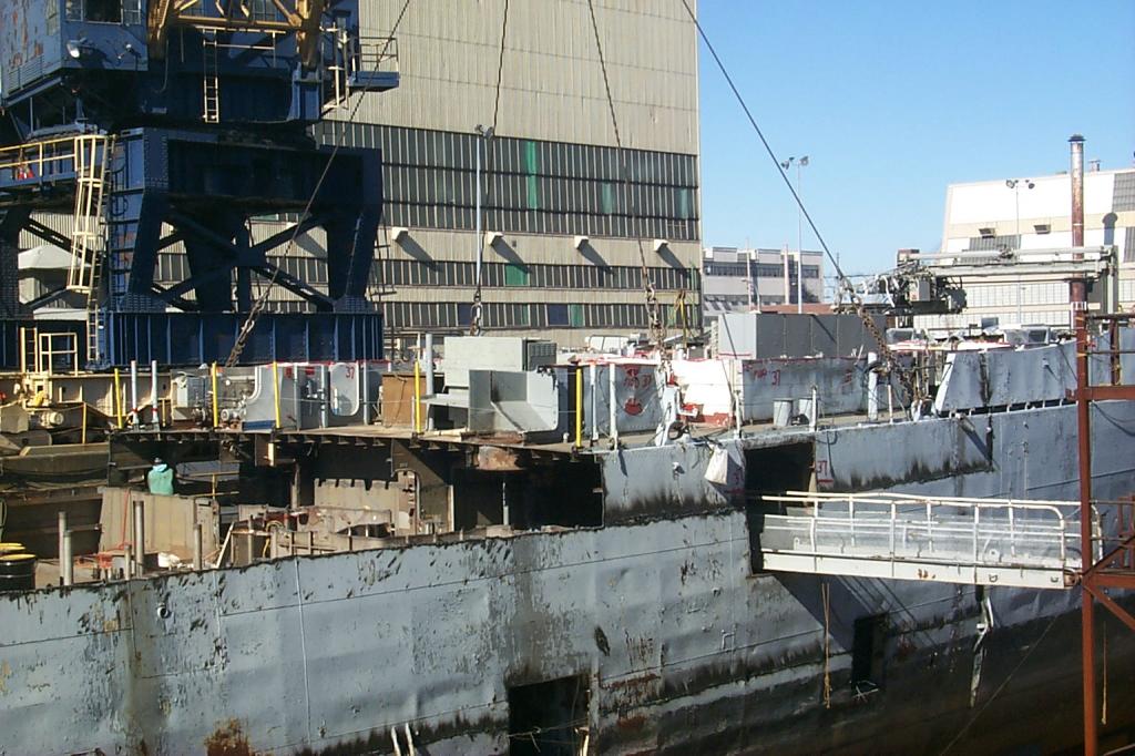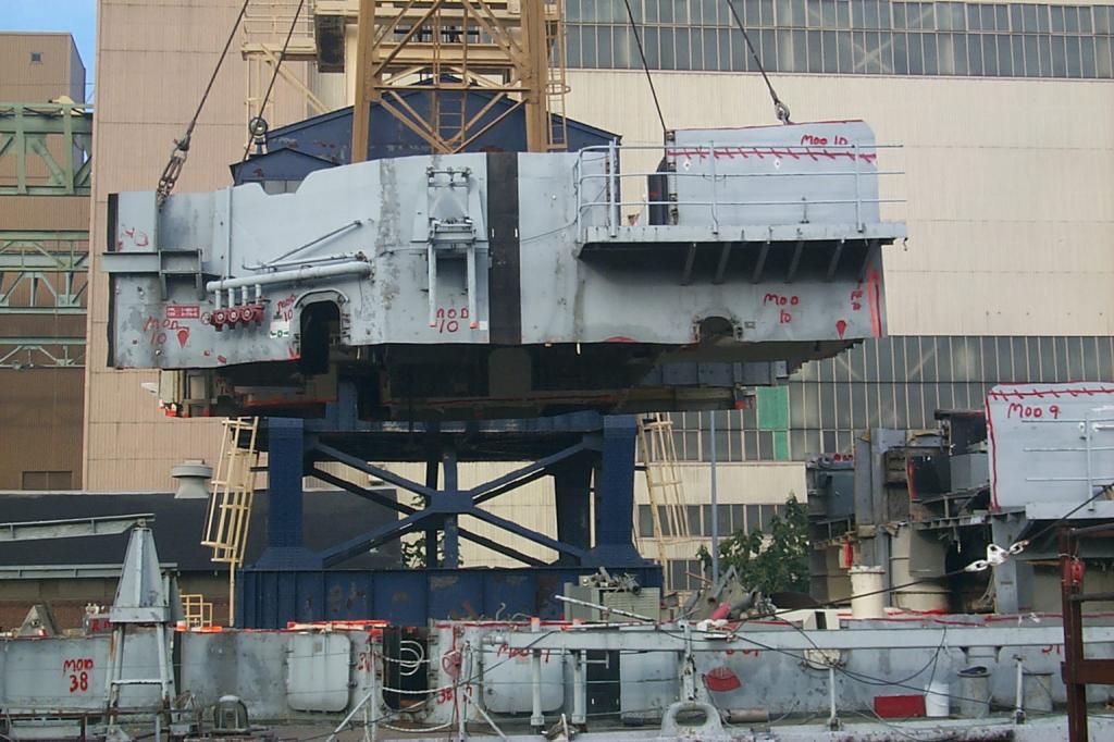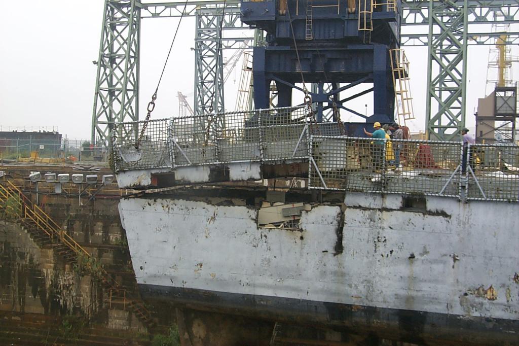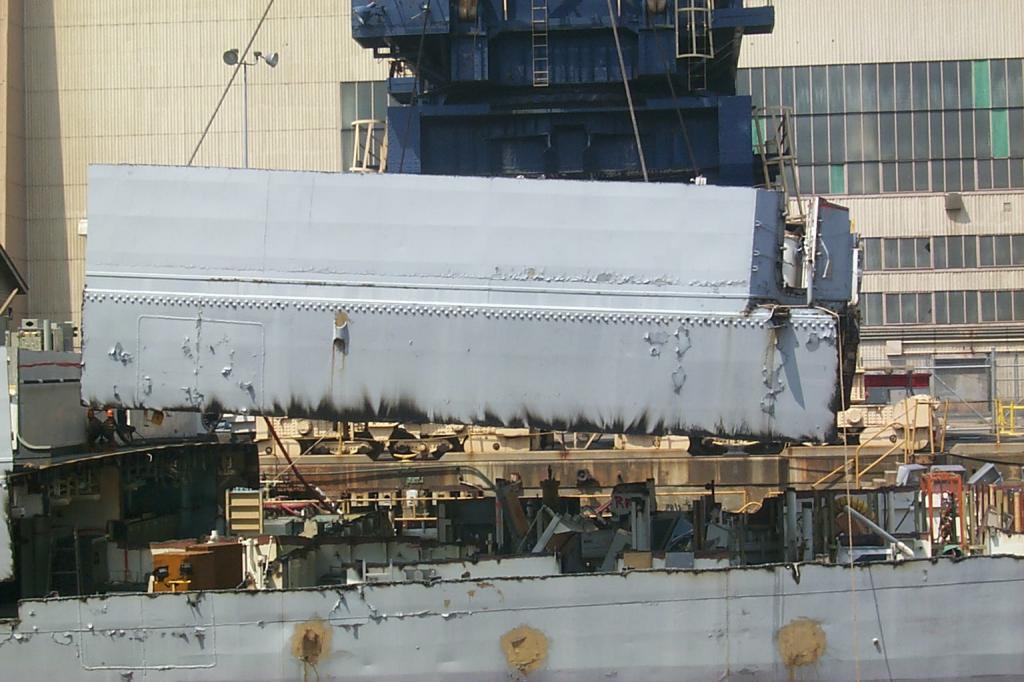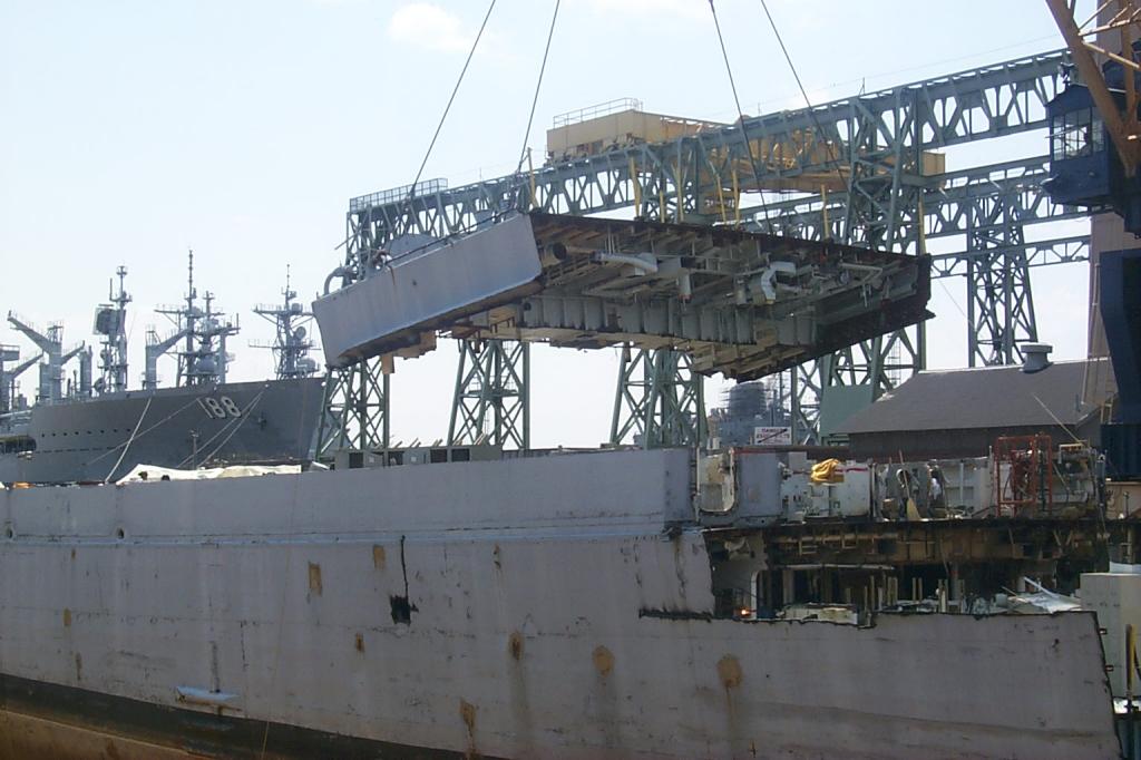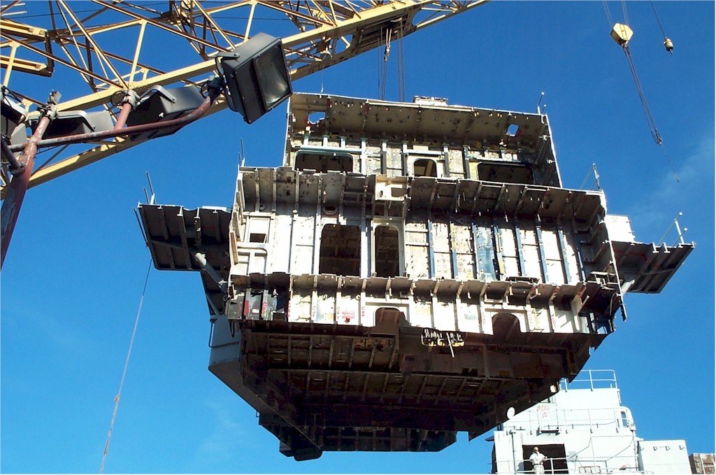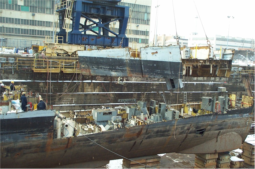 modules from a once proud US Navy ship waiting for the shredding