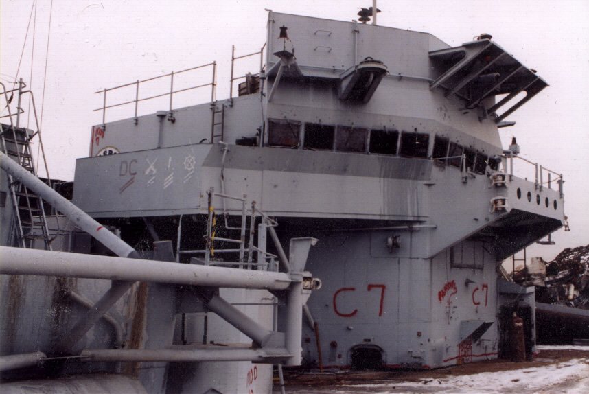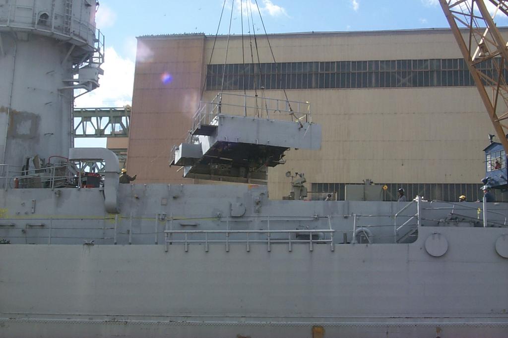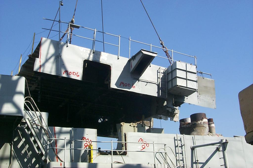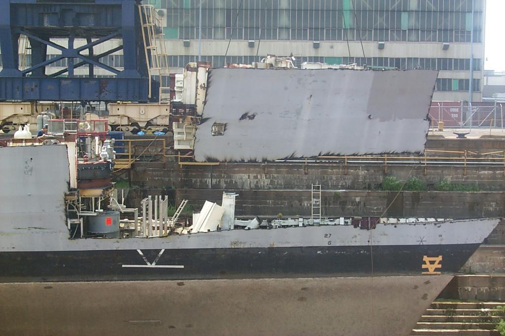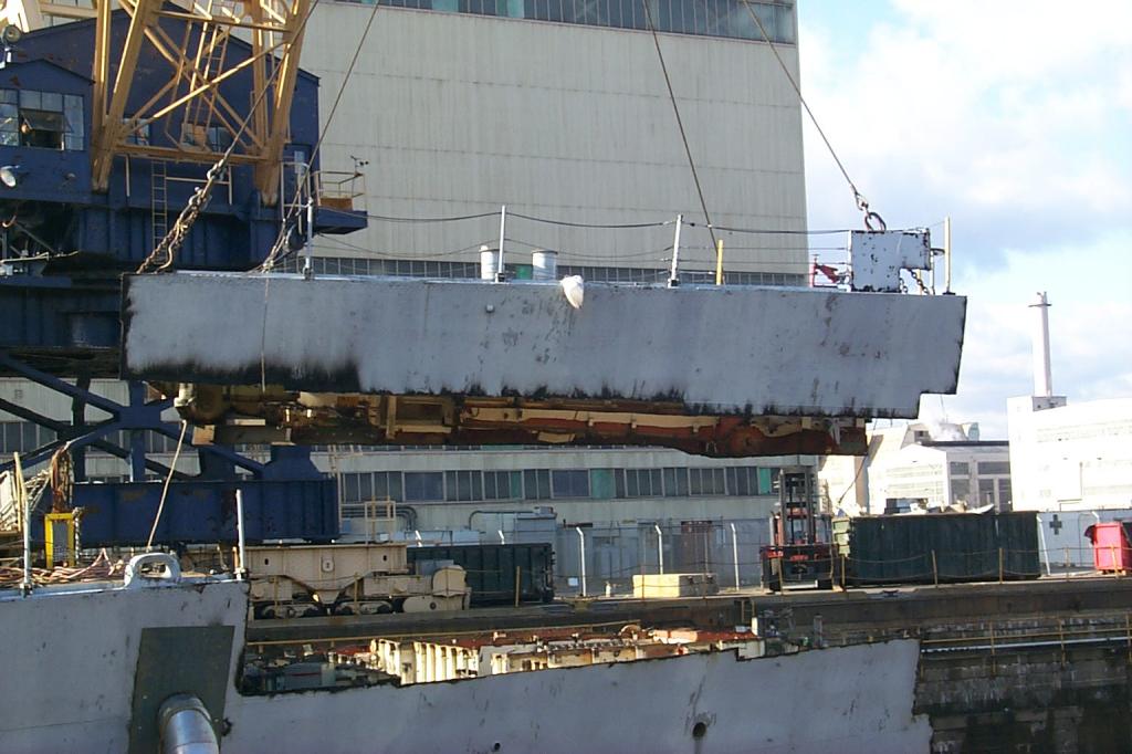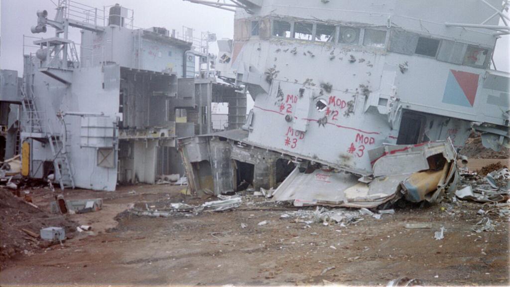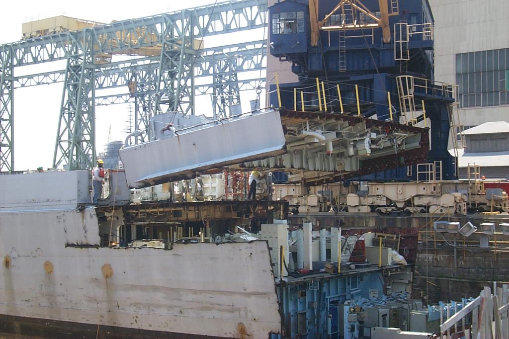 modules from a once proud US Navy ship waiting for the shredding