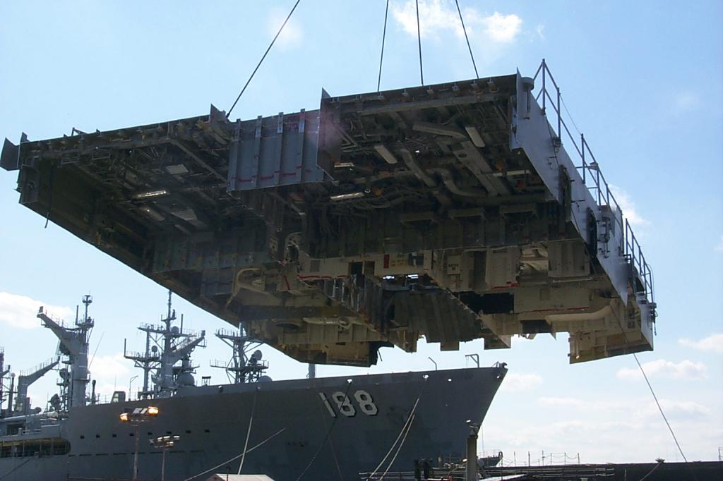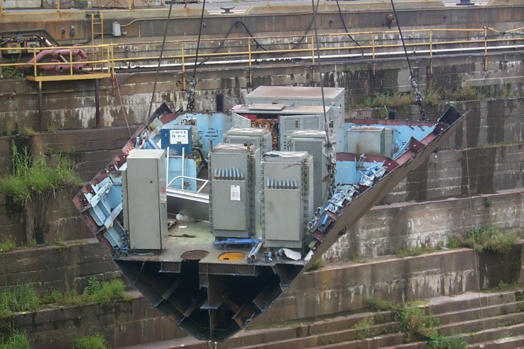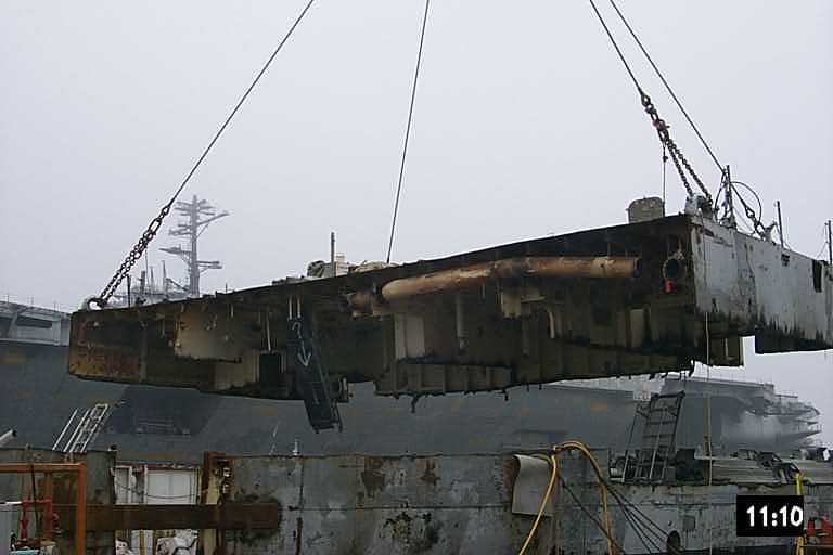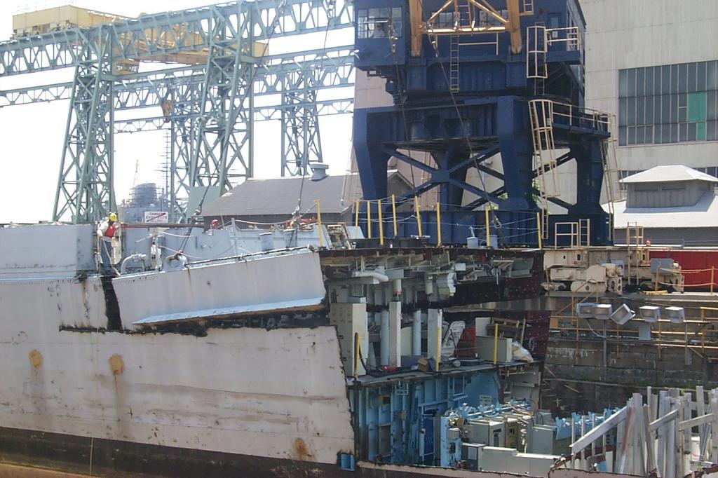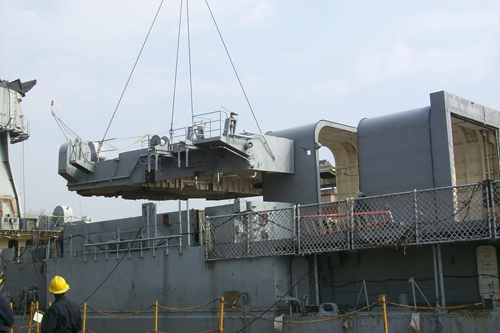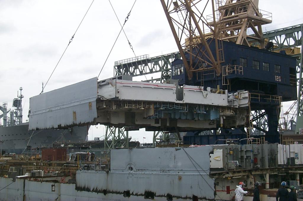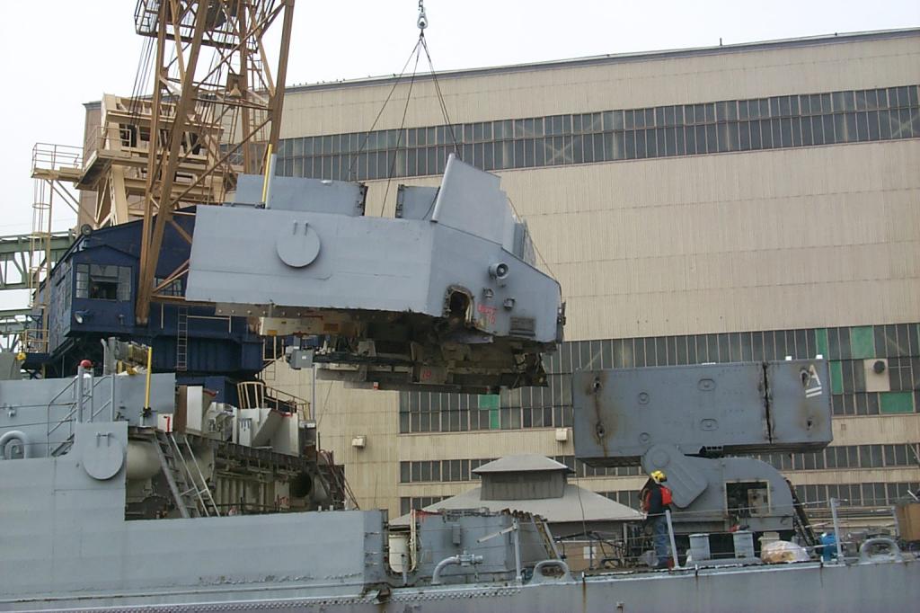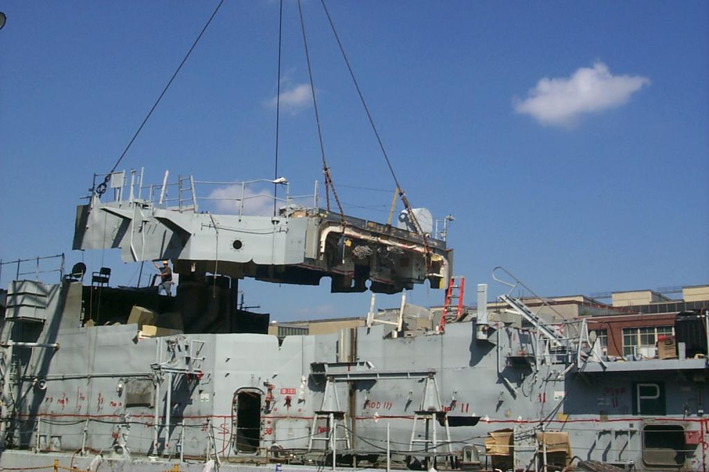 modules from a once proud US Navy ship waiting for the shredding