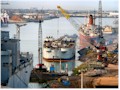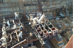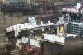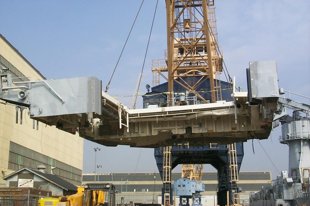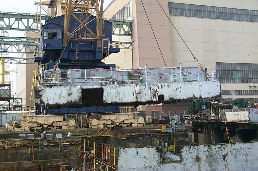 modules sitting on the floor of the drydock ready to be lifted