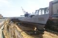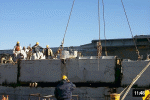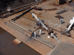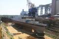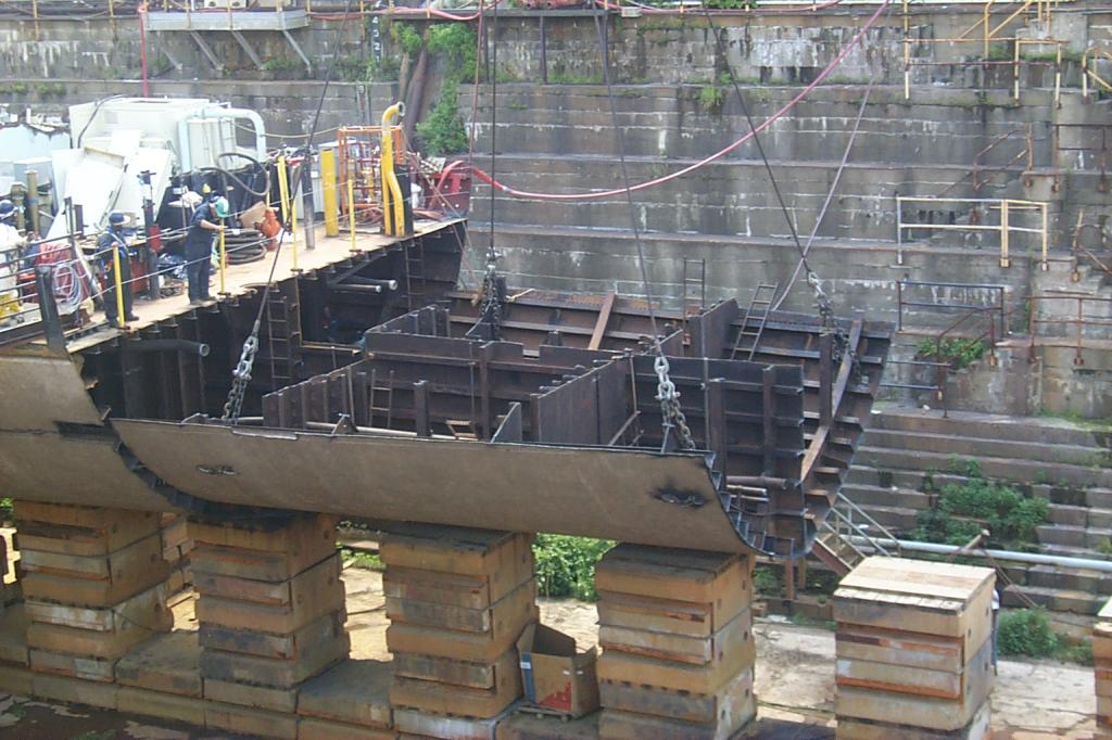 Keel pieces lying on barge |
