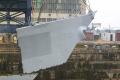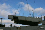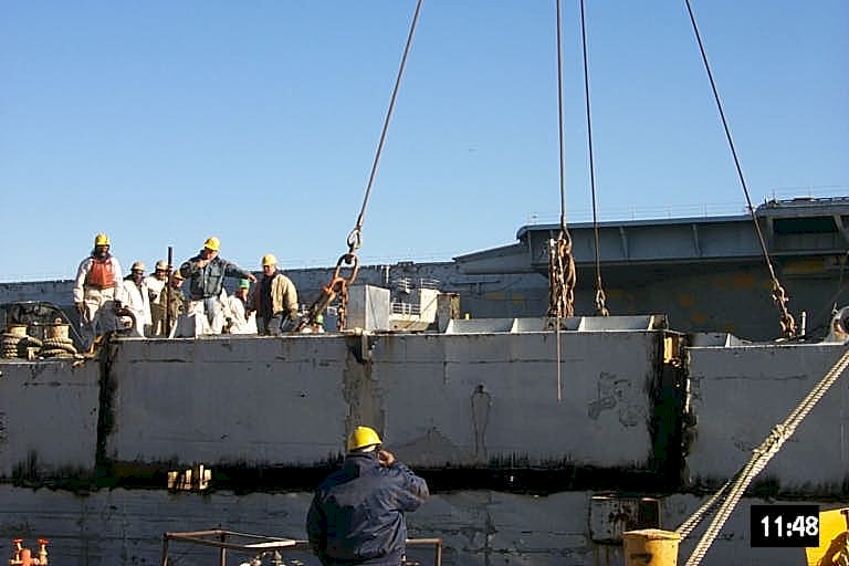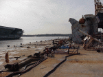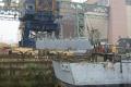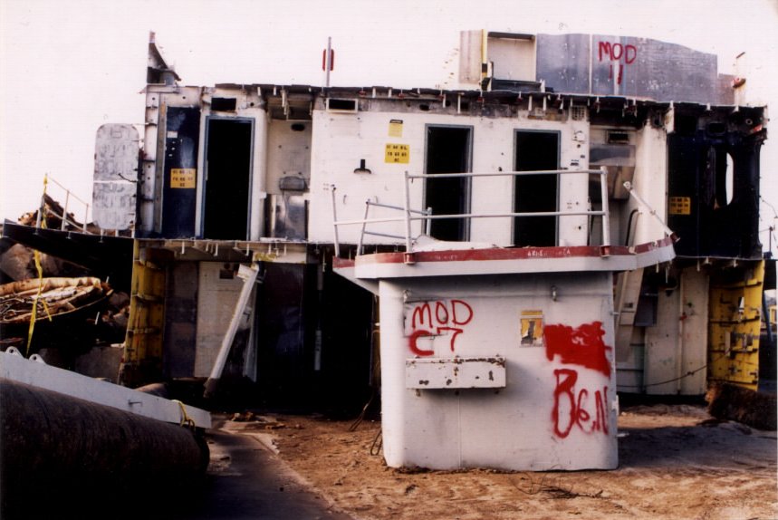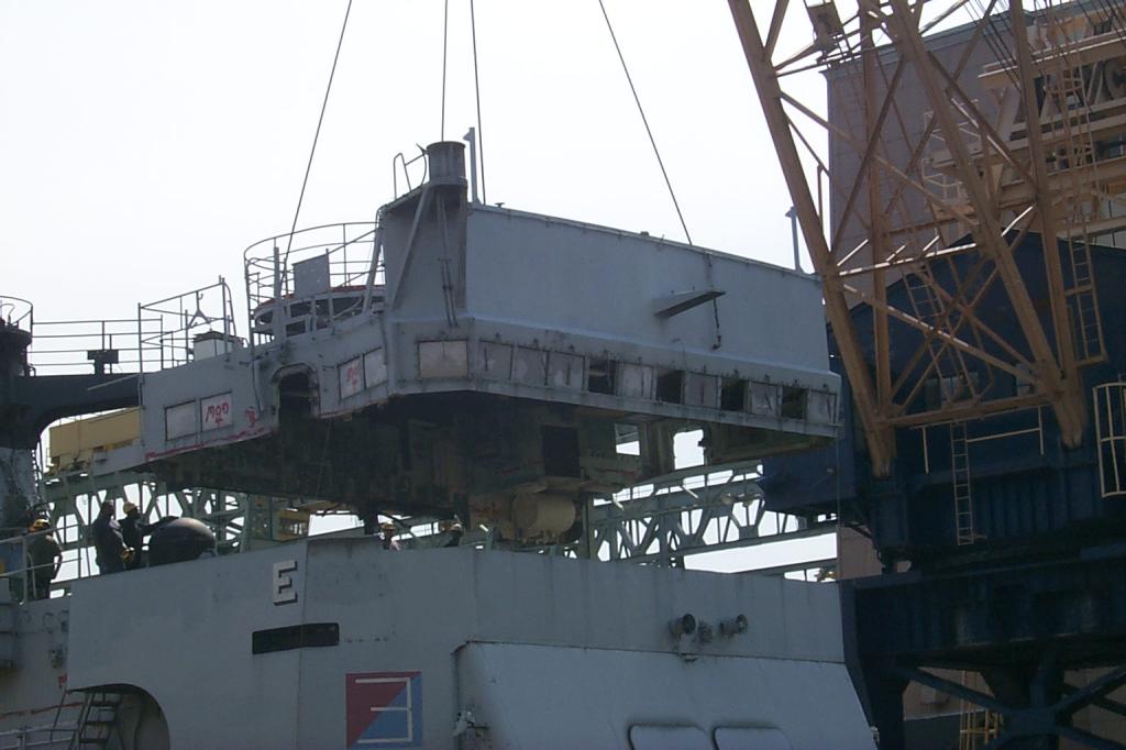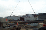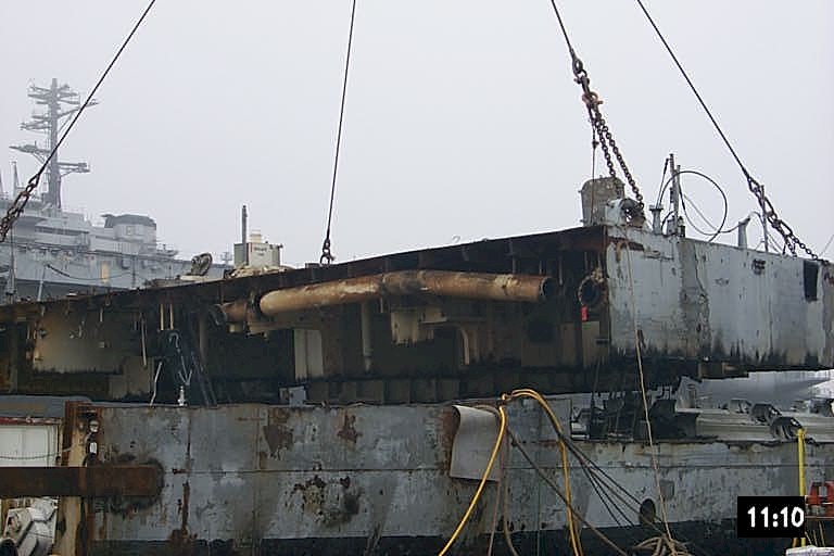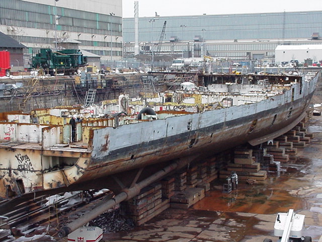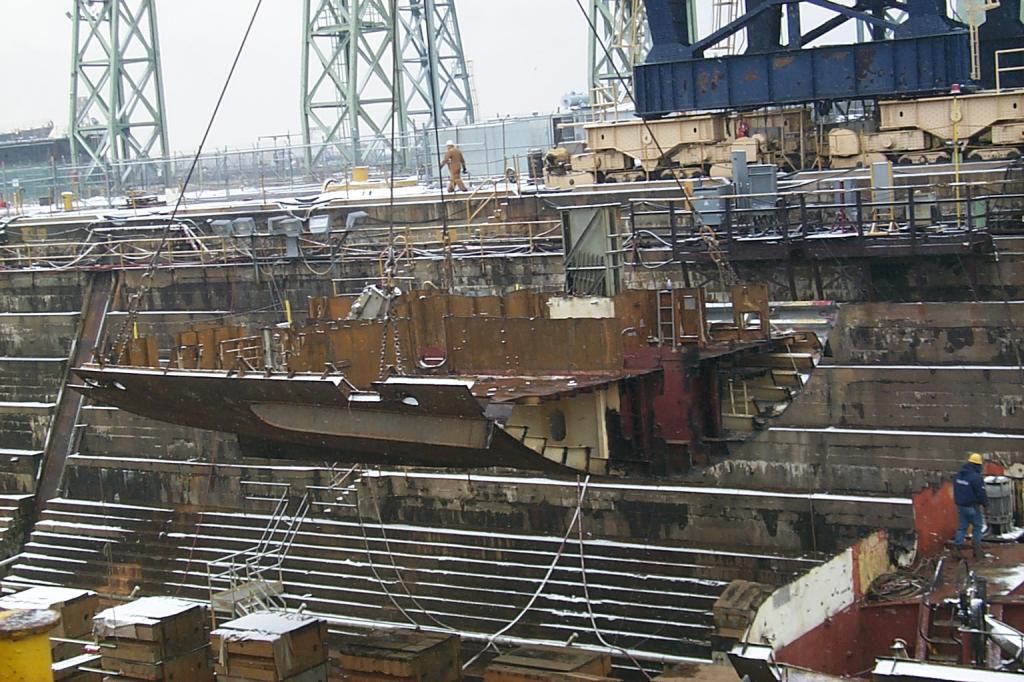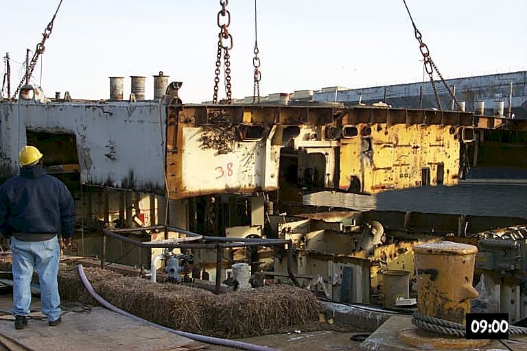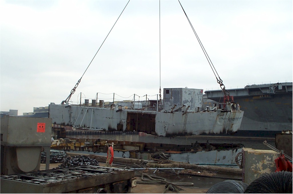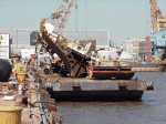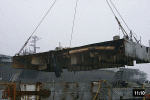 Bow piece removed and on barge going to Camden |
