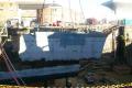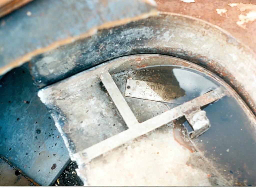 | The very bottom of a ship, visible is the skeg and bottom voids circa 2001 |