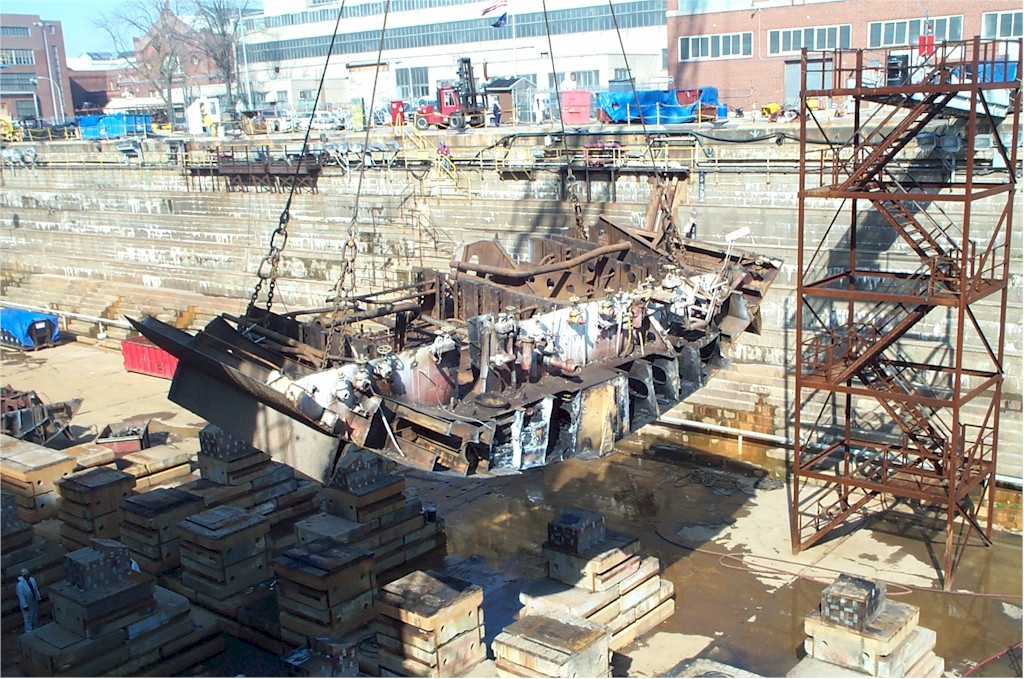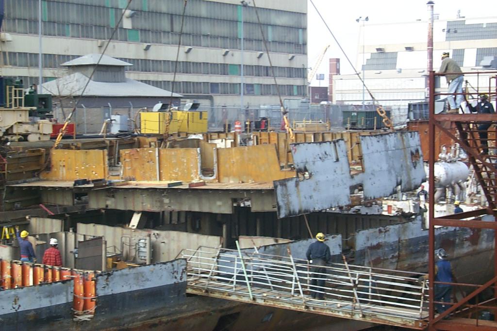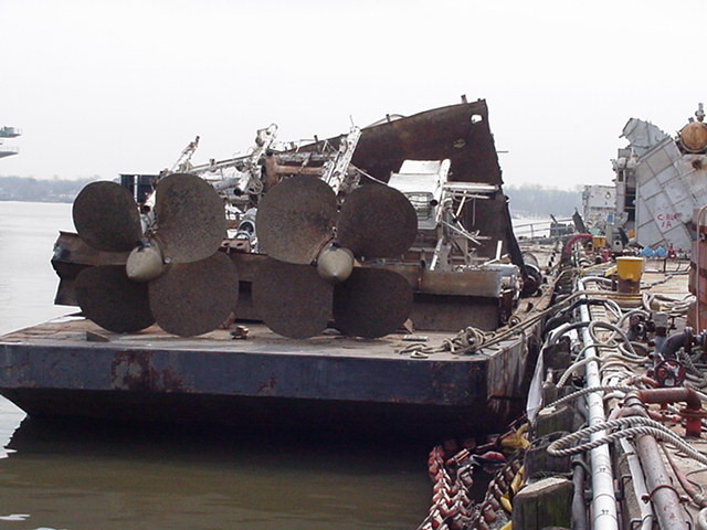 placed on barges to go to a scrap yard in Camden, NJ for final