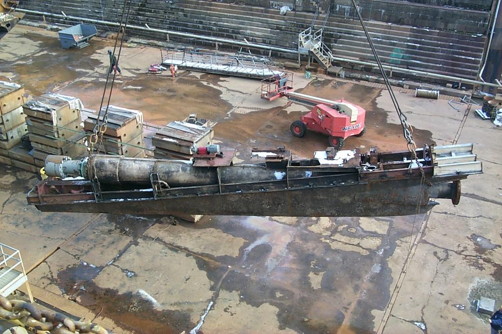 Pulling sonar dome from keel |