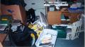 In the office, souveniers of DD-519, Eng org board and name board |
