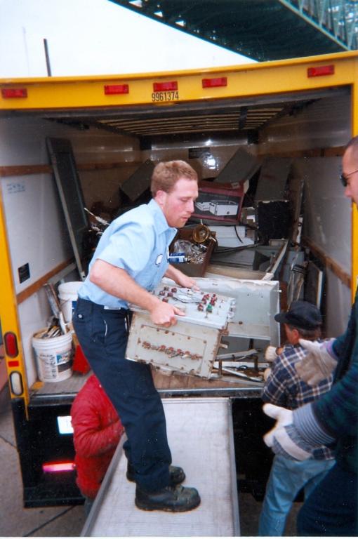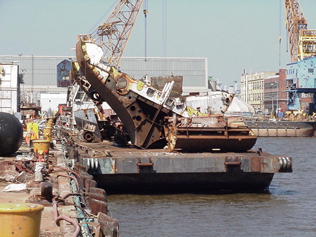 out and placed on barges to go to a scrap yard in Camden, NJ for