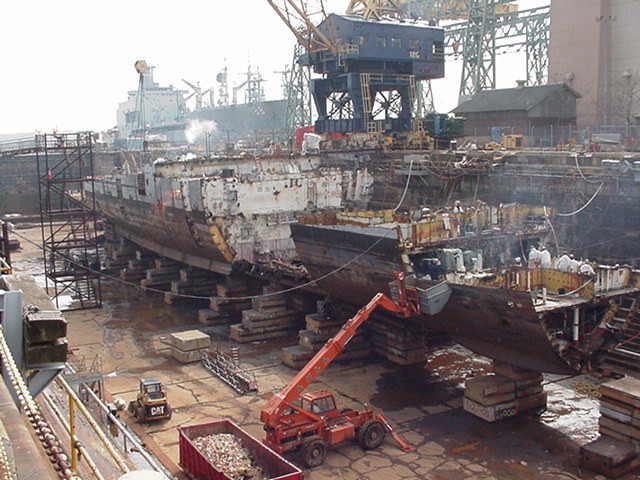 USS Biddle and Yarnall at metro Machine while scrapping finally on the