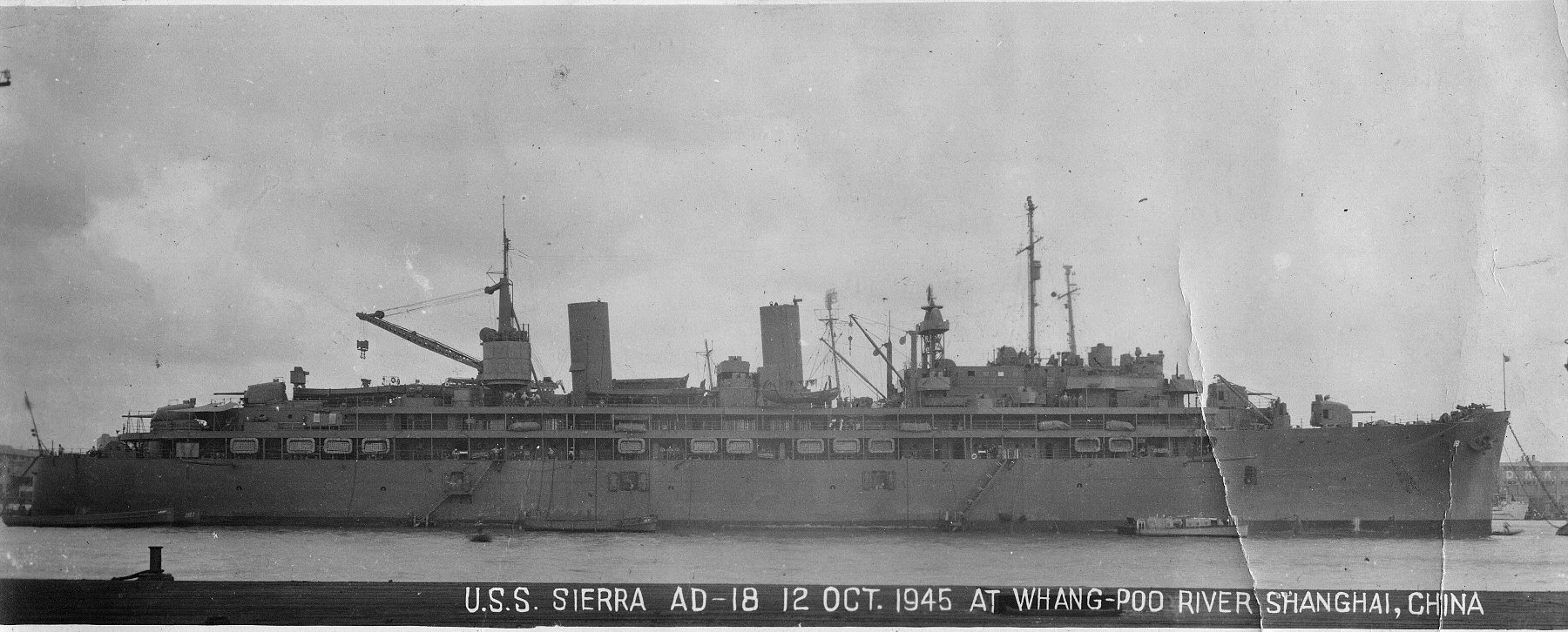 299k | USS Sierra (AD-18) anchored in the Whangpoo River at Shanghai, China, 12 October 1946. | Robert Hurst | |