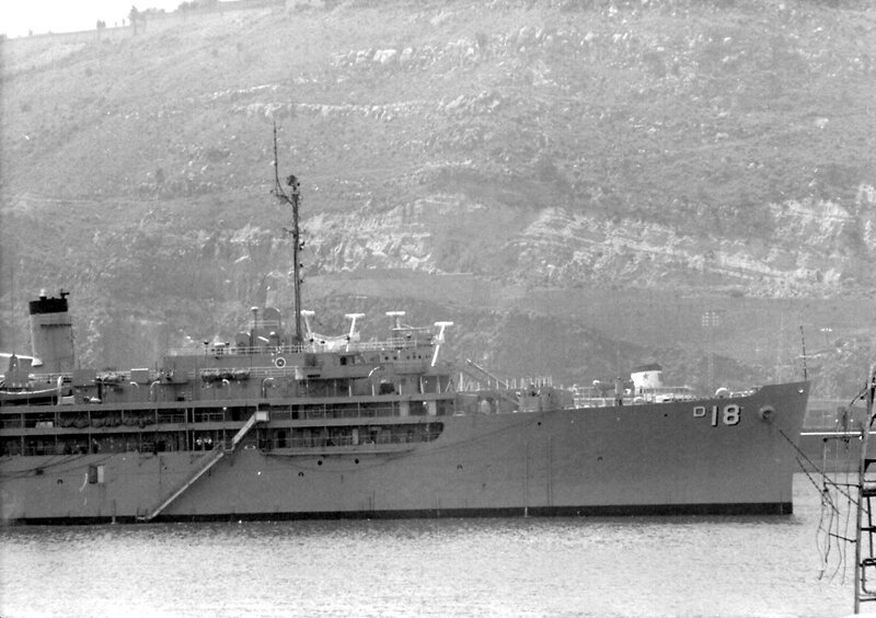 92k | A closer view of USS Sierra (AD-18) at Barcelona, Spain, 2 July 1977. | Photo by Fabio Peņa | |