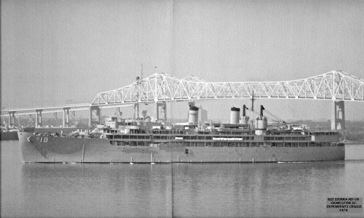 57k | USS Sierra (AD-18) under way on the Cooper River at Charleston, S.C., for a dependents cruise in 1979. | Gene Snyder | |