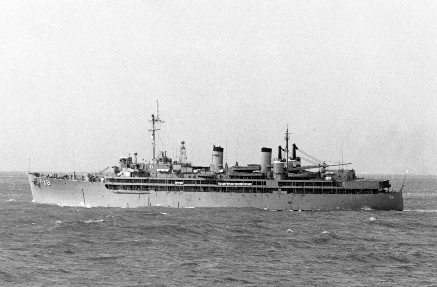 78k | USS Sierra (AD-18) under way near Hampton Roads in a photo received by the Naval History and Heritage Command in September 1963 but taken earlier. The ship lost its after two 5"/38 gun mounts, still visible here, circa 1962-63. US Naval History and Heritage Command photo # KN-8015. From the collections of the US Naval History and Heritage Command |