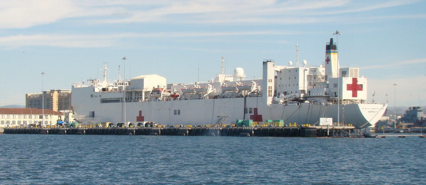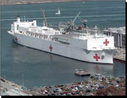 18k | USNS Mercy (T-AH-19) moored pierside, Point Loma, San Diego, CA., 2 July 1997 US Navy photo by PH2 Felix Garcia Jr |