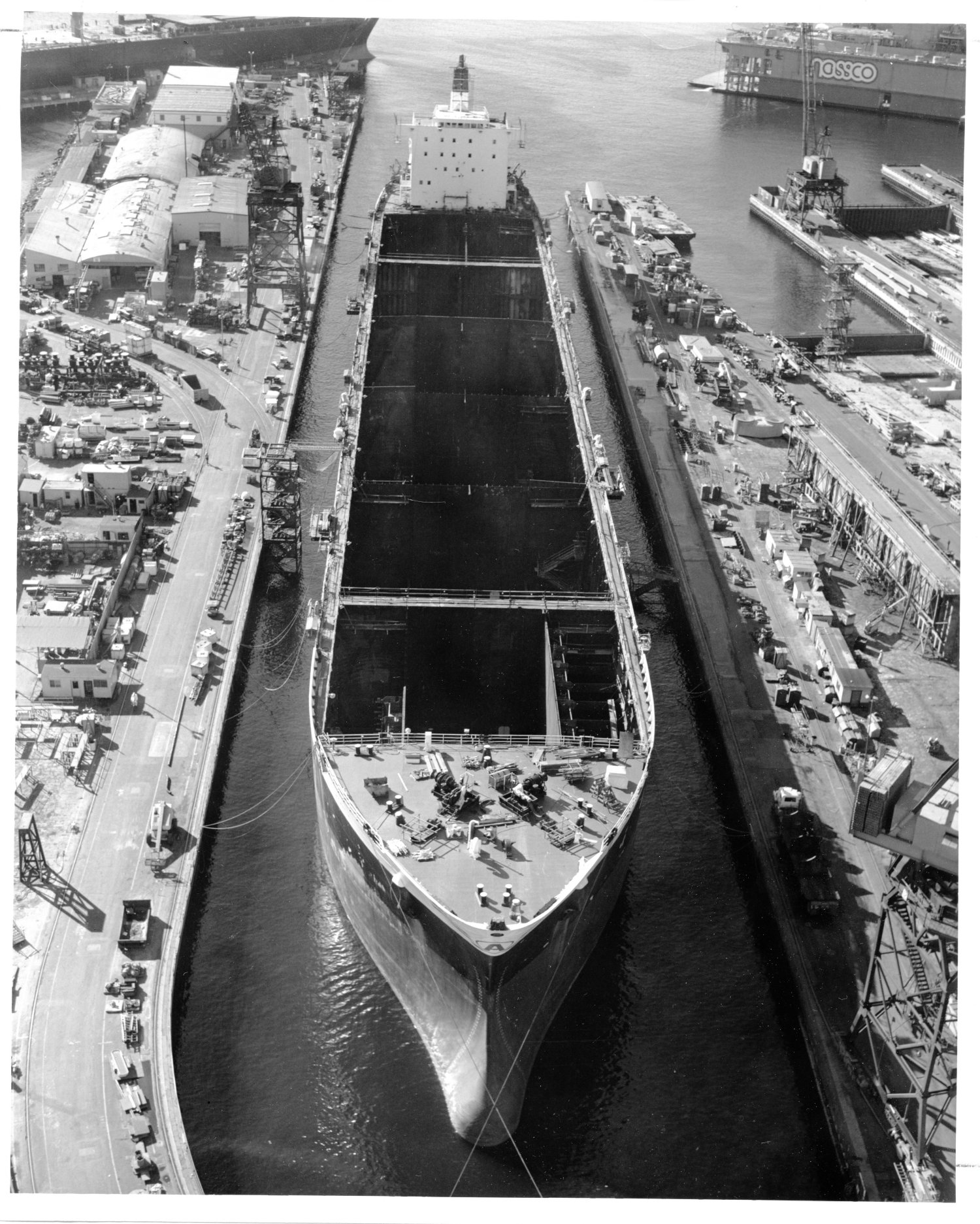 550k | Supertanker ST Worth entering the drydock at National Steel and Shipbuilding Co., San Diego, CA., 20 July 1984, for conversion to a hospital ship.