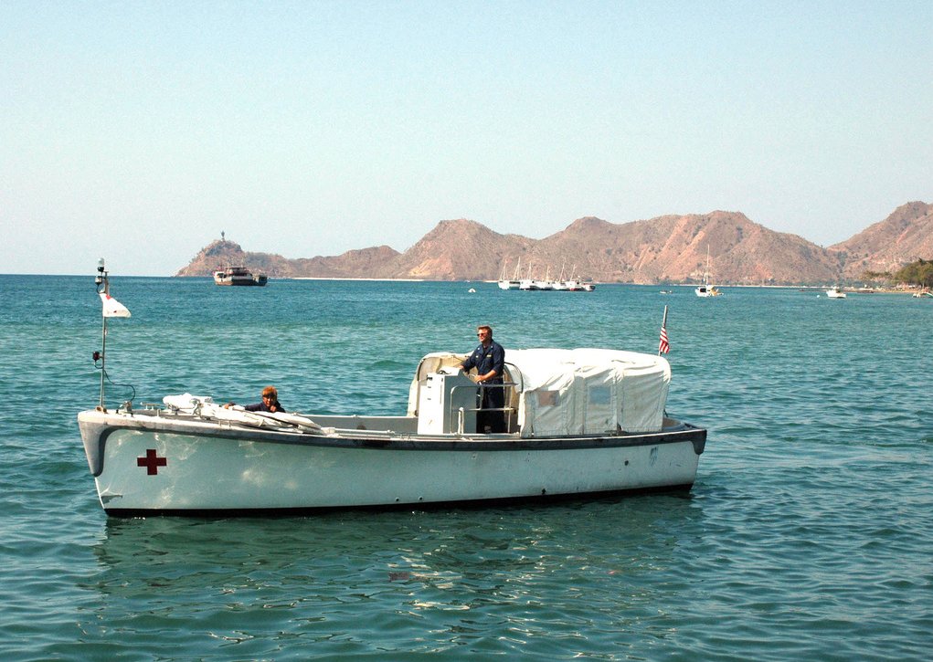 159k | One of USNS Mercy's (T-AH-19) small boats transporting local patients to the ship which operated off the coast of Dili, East Timor, 27 August 2006.