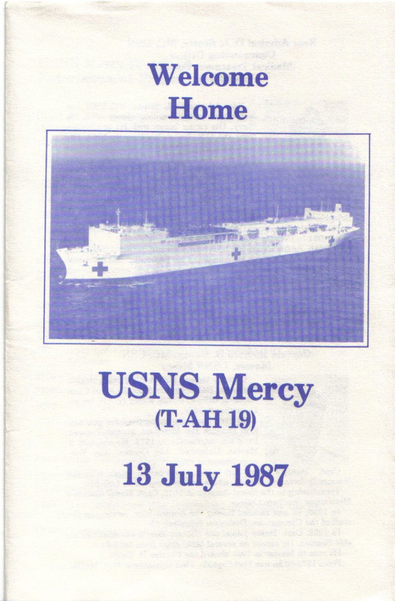 172k | USNS Mercy (T-AH-19) Welcome Home ceremony program, 13 July 1987. | Robert M. Cieri | |