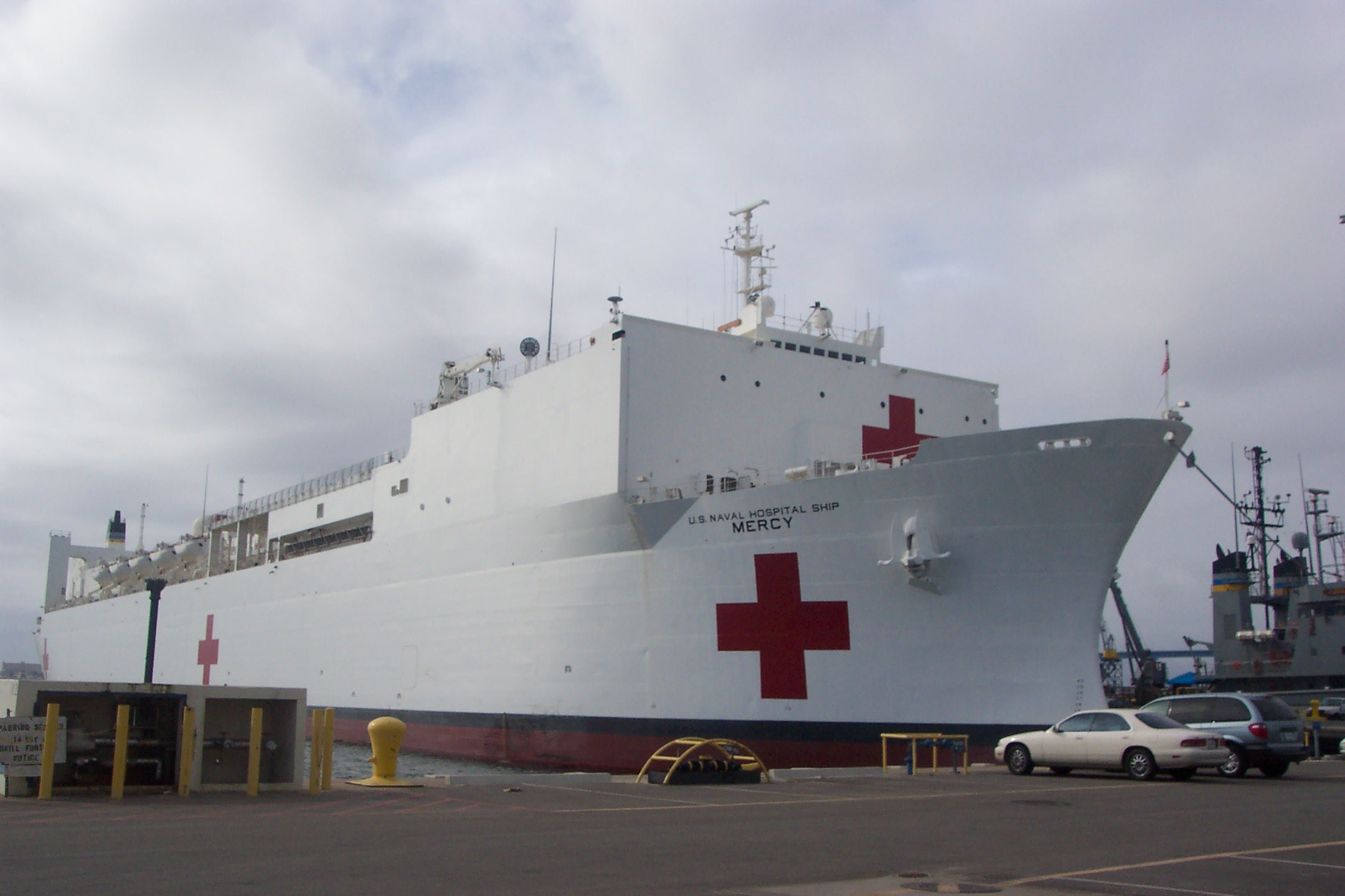 233k | USNS Mercy (T-AH-19) (left) and USNS Comfort (T-AH-20) tied up at the National Steel and Shipbuilding Company (NASSCO)