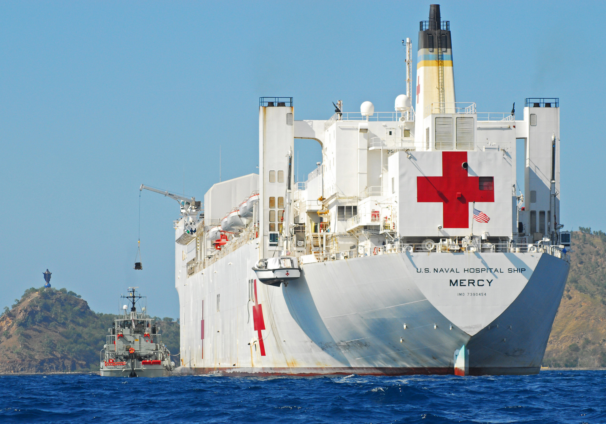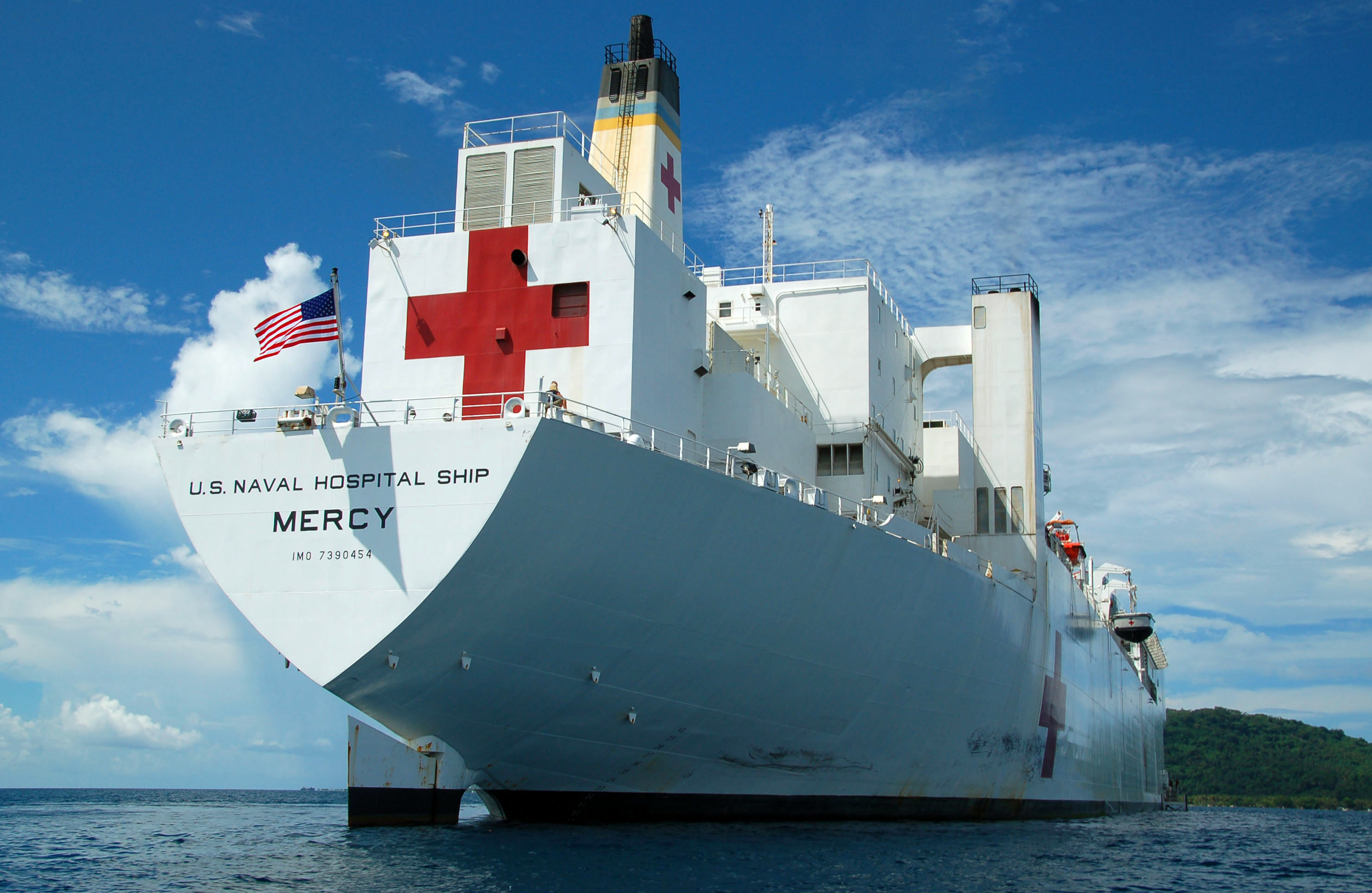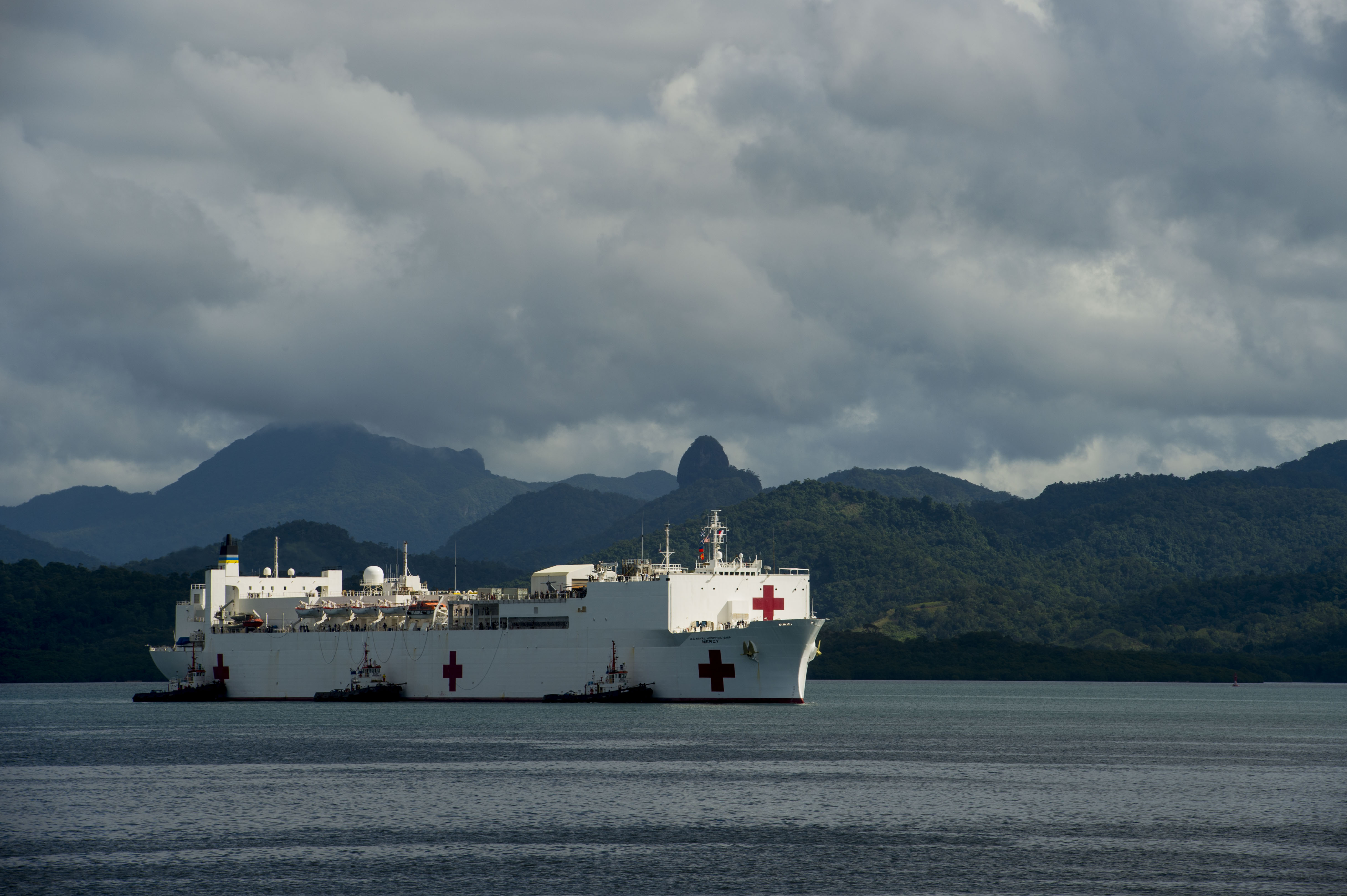 166k | USNS Mercy (T-AH 19) sits at anchorage in Simpson Harbor off the coast of Rabaul, Papua New Guinea. Mercy is