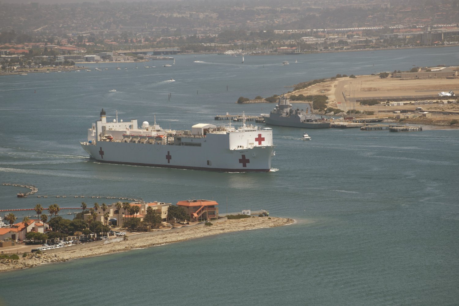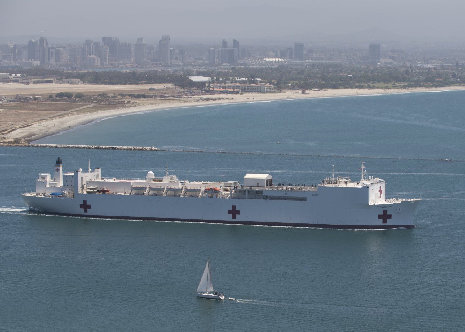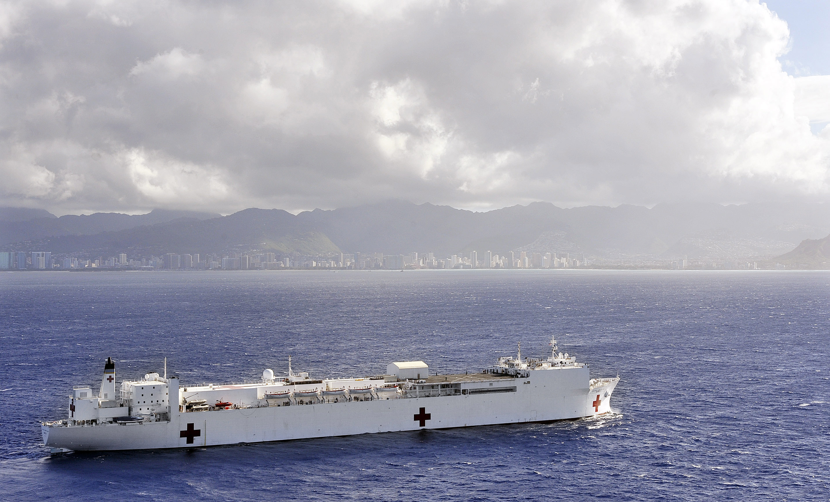 317k | USNS Mercy (T-AH-19) underway off San Diego, CA., date unknown.