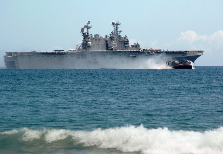 1017k | USS Peleliu (LHA-5) steams off the coast of Pakistan, in the early stages of supporting the Pakistani government and military with heavy lift capabilities to bring relief to flooded regions of Pakistan. US Navy photo # 100813-N-VN598-034 Arabian Sea (August 13, 2010) by MC2 Andrew Dunlap. |