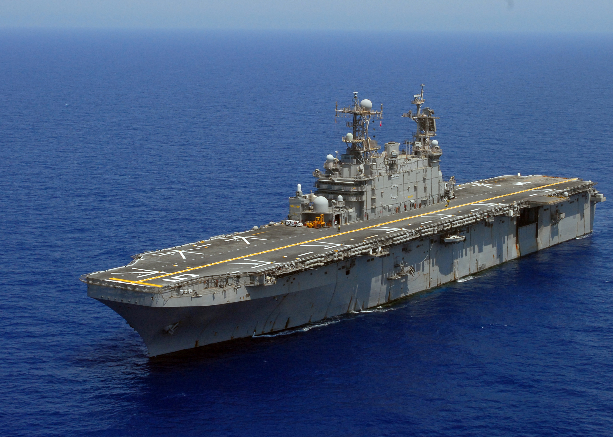 2428k | USS Peleliu (LHA-5) conducts operations in the Red Sea, 27 August 2008. Peleliu is deployed supporting maritime security operations in the U.S. 5th Fleet area of responsibility. US Navy photo # 080827-N-2183K-172 RED SEA (Aug. 27, 2008) by MC2 Dustin L. Kelling. |