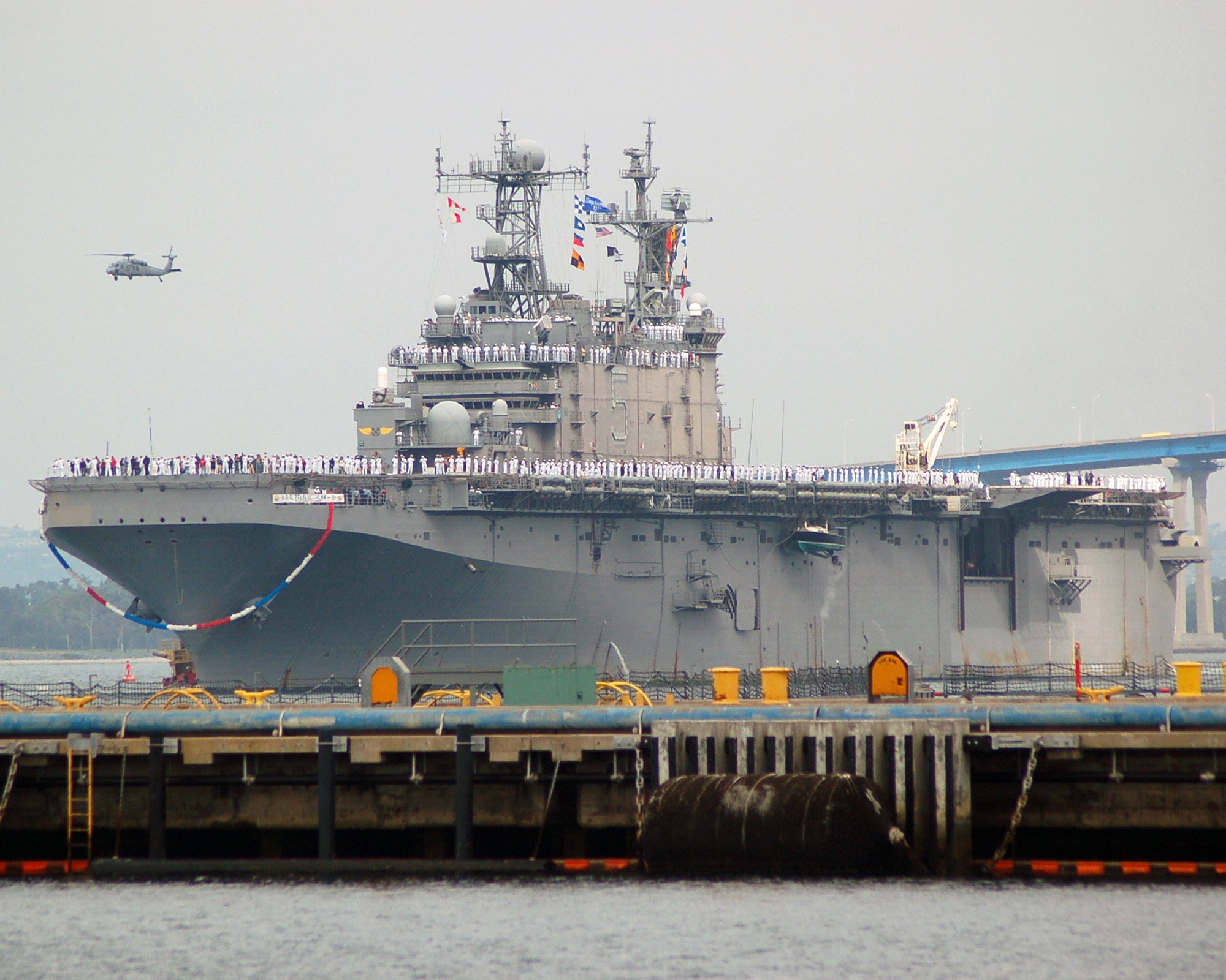 2059k | USS Peleliu (LHA-5) moored pierside at Naval Station San Diego in 2008. | Photo by Richard Miller BMCS USNR (Ret) | |