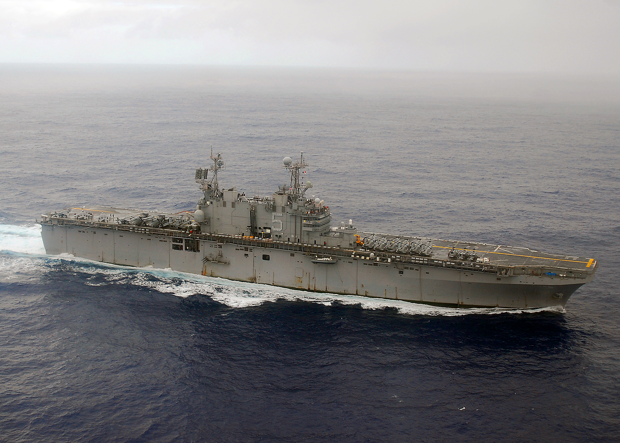 546k | USS Peleliu (LHA-5) steams through the South China Sea, 30 May 2008. Peleliu is the flagship of the Peleliu Expeditionary Strike Group and is on a scheduled deployment. US Navy photo # 080530-N-2179W-234 SOUTH CHINA SEA (May 30, 2008) by MC2 Scott Web. |